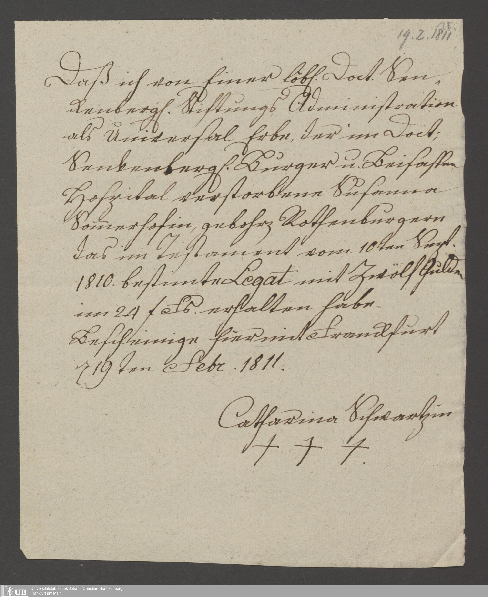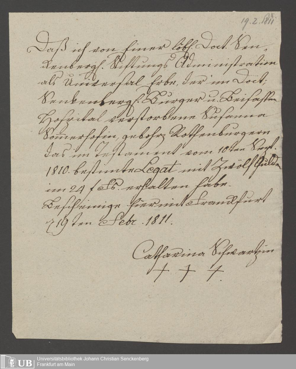 B 5 Dr. Senckenbergische Stiftung, 134 - Testament Susanna Sommerhof