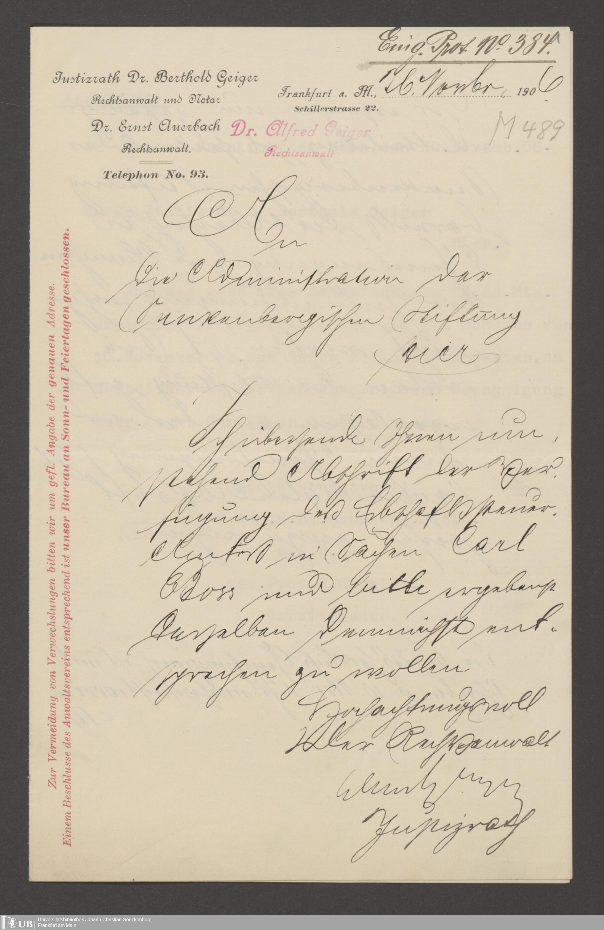 B 5 Dr. Senckenbergische Stiftung, 135 - Legat Johann Barensfeld