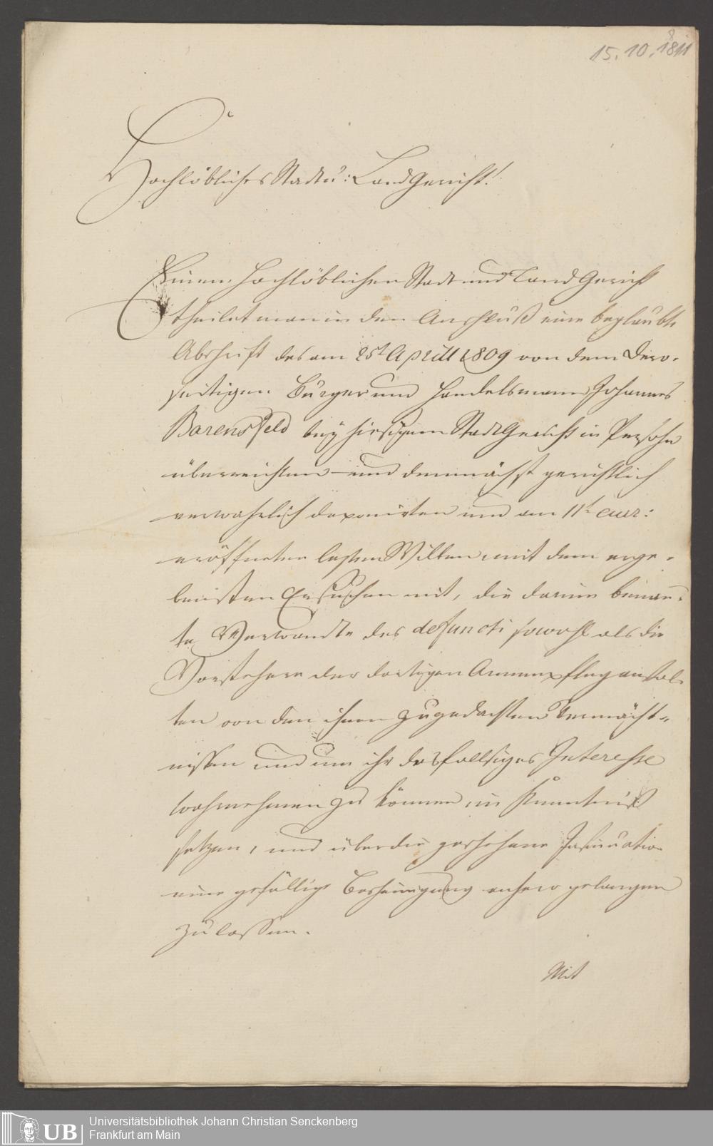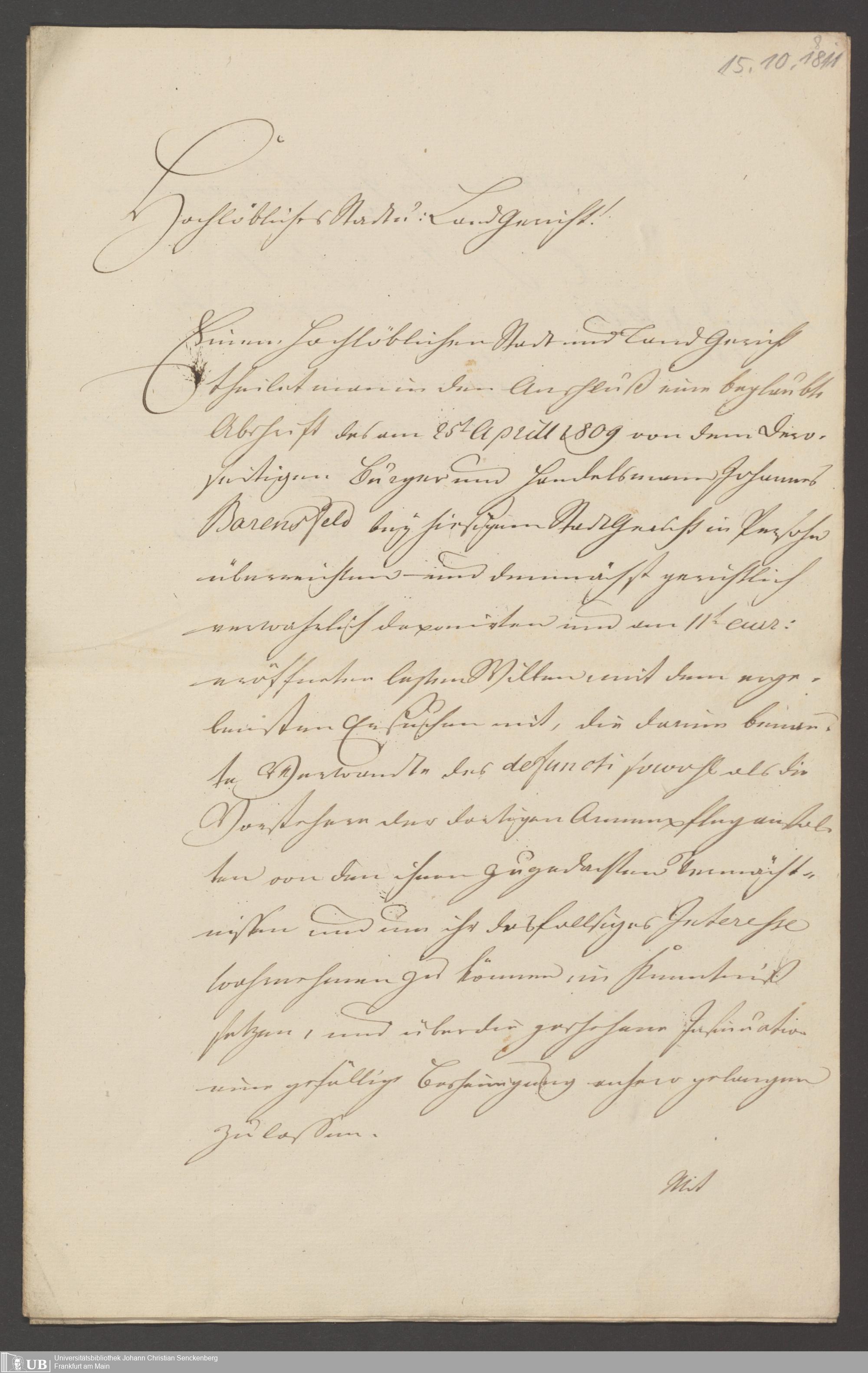 B 5 Dr. Senckenbergische Stiftung, 135 - Legat Johann Barensfeld