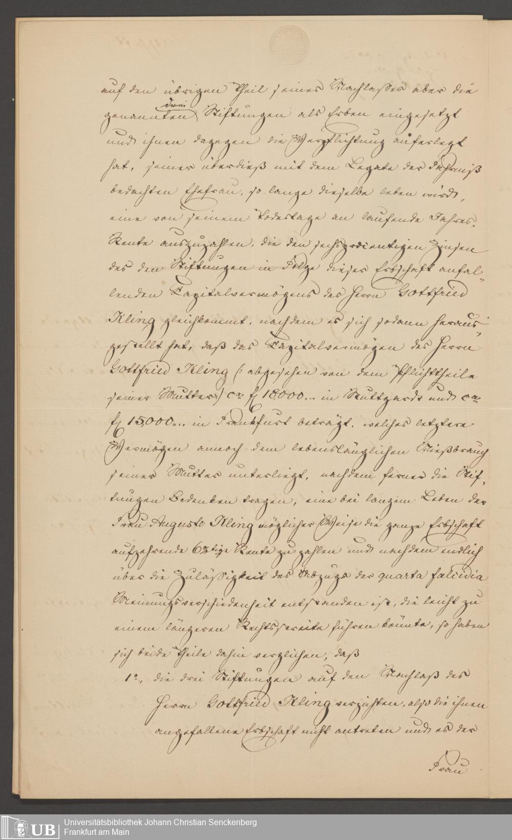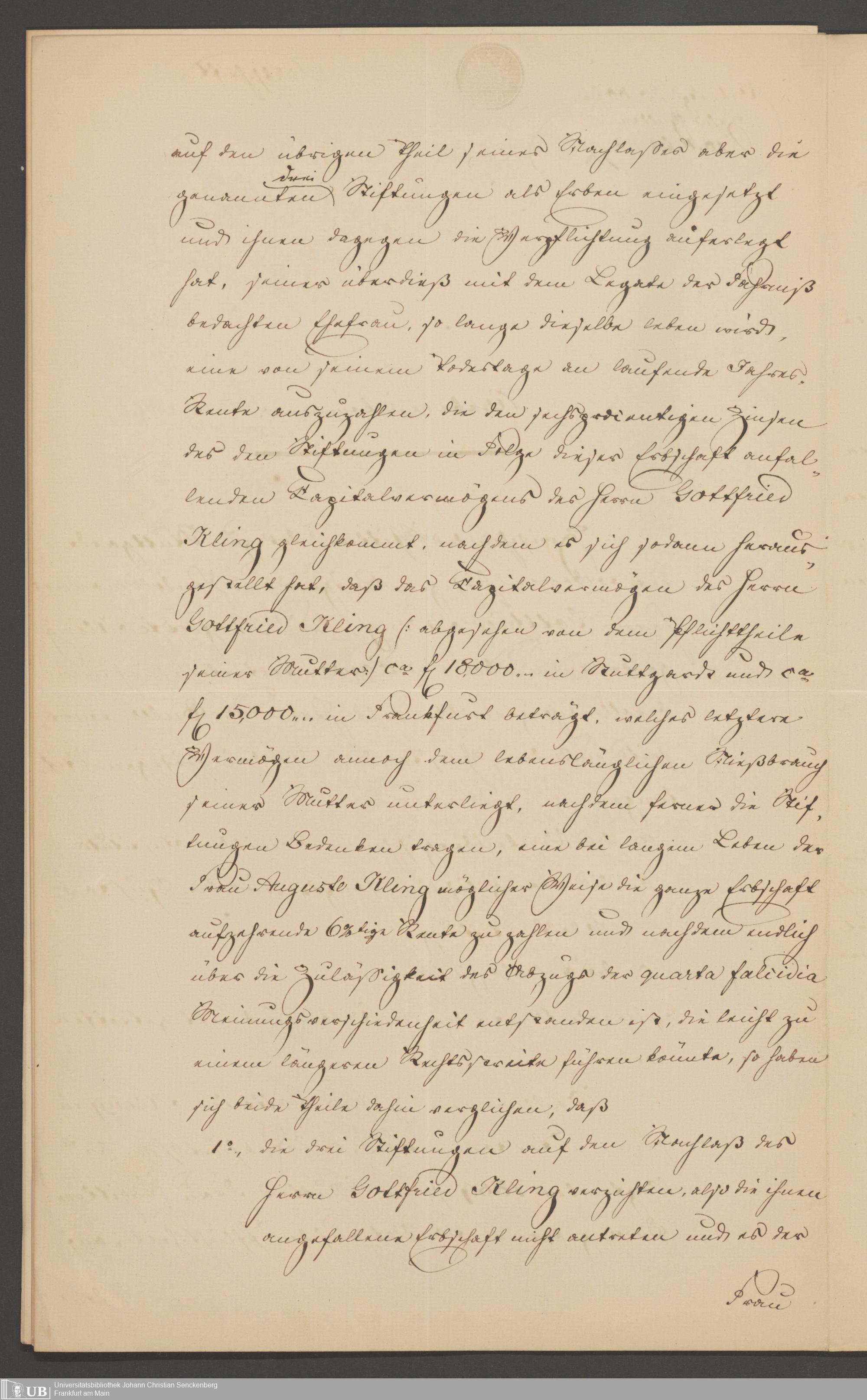 B 5 Dr. Senckenbergische Stiftung, 136 - Testament Gottfried Kling