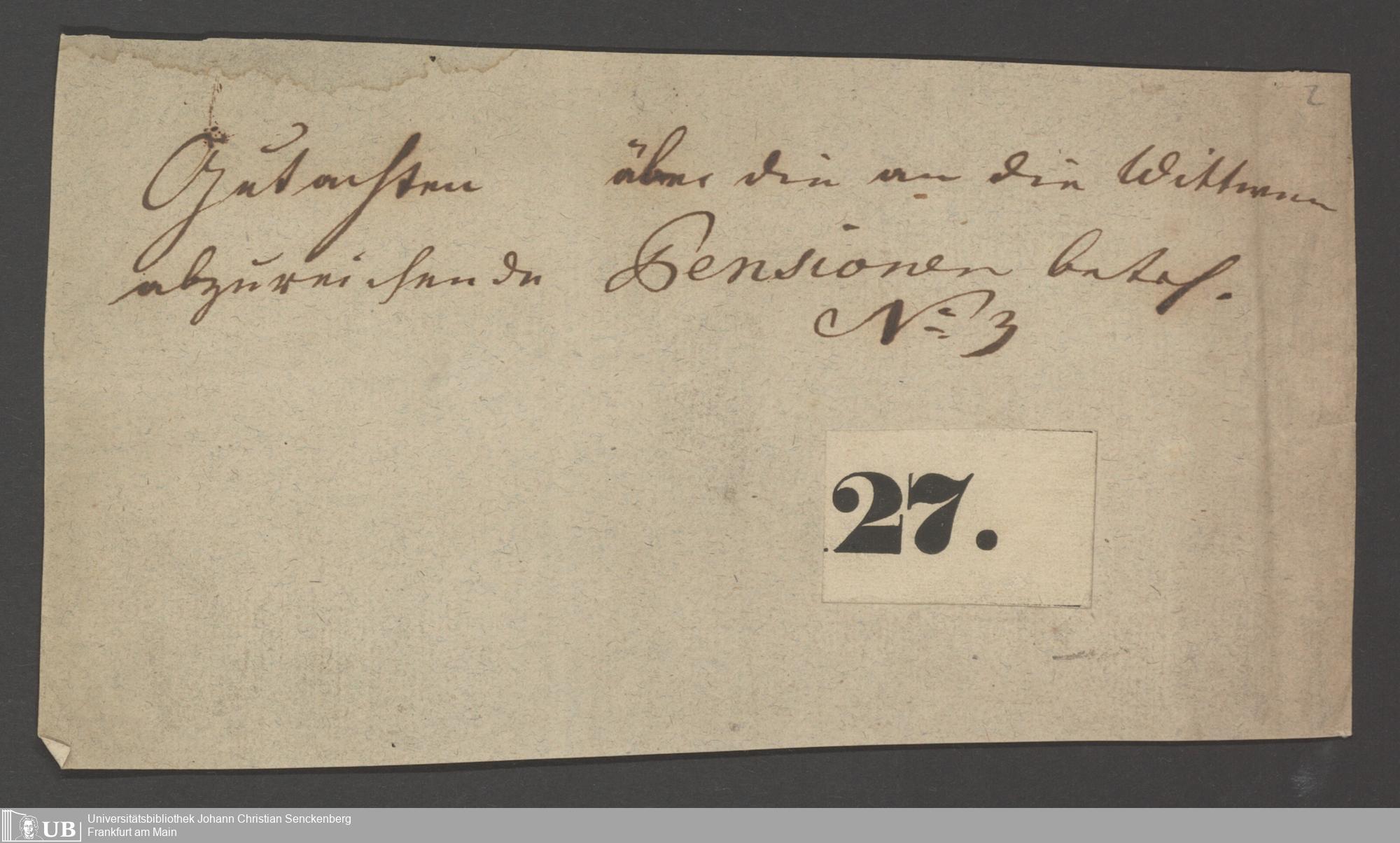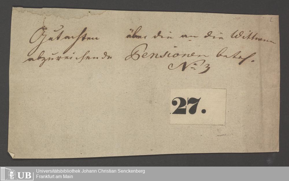 B 5 Dr. Senckenbergische Stiftung, 139 - Erklärung der Administration auf einen Antrag auf Zahlung von Witwenpensionen