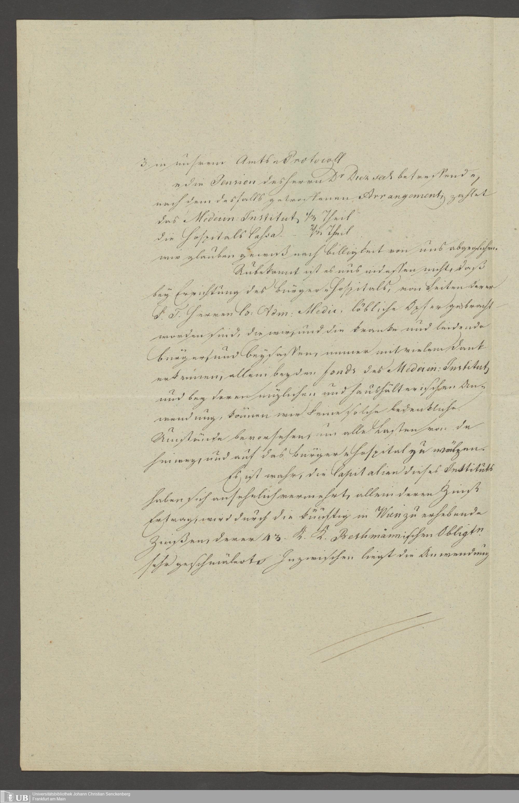 B 5 Dr. Senckenbergische Stiftung, 139 - Erklärung der Administration auf einen Antrag auf Zahlung von Witwenpensionen