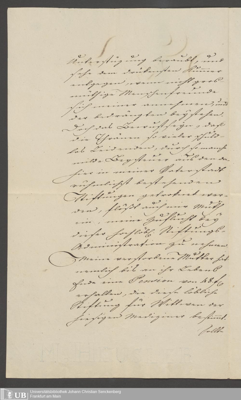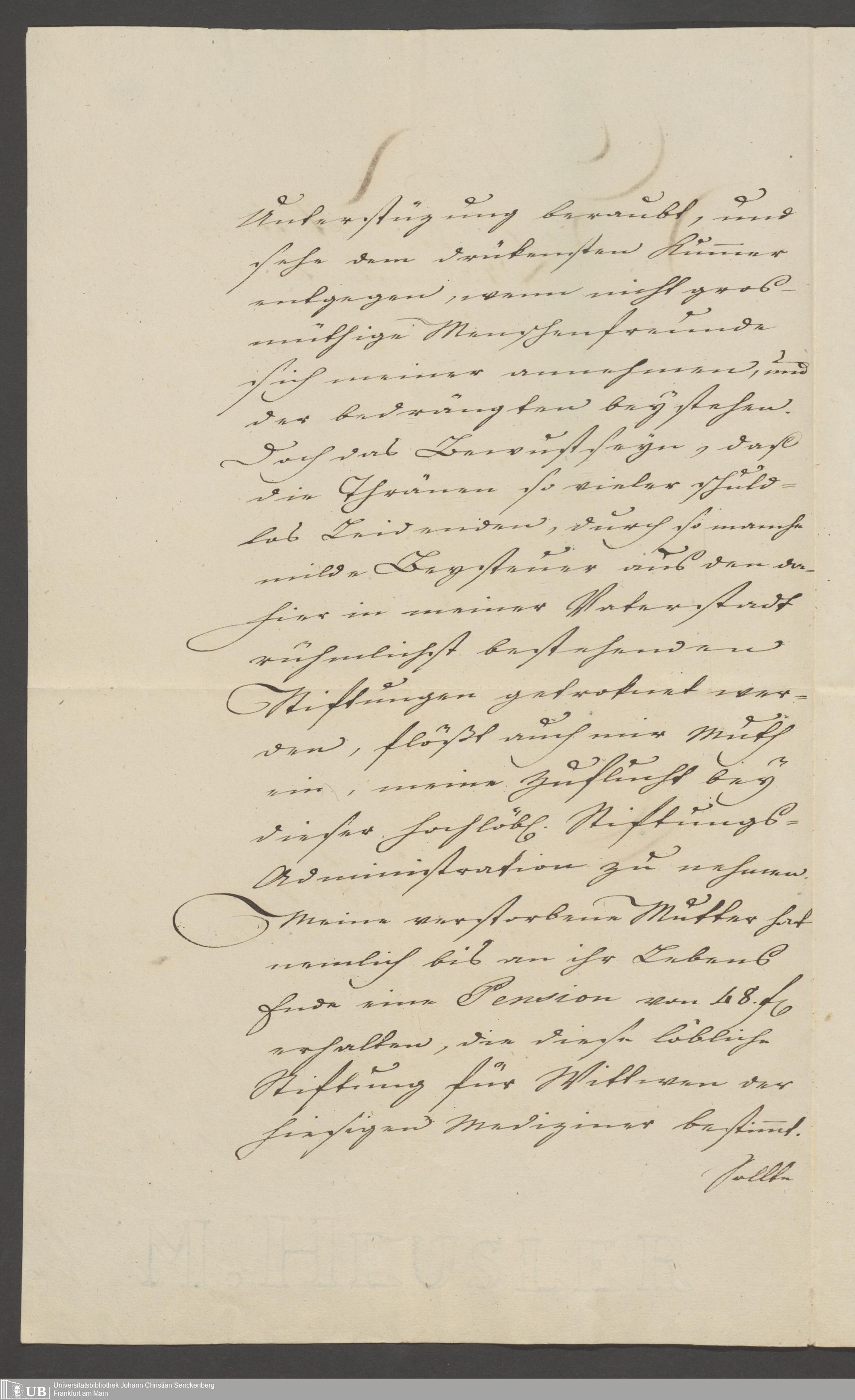 B 5 Dr. Senckenbergische Stiftung, 139 - Erklärung der Administration auf einen Antrag auf Zahlung von Witwenpensionen