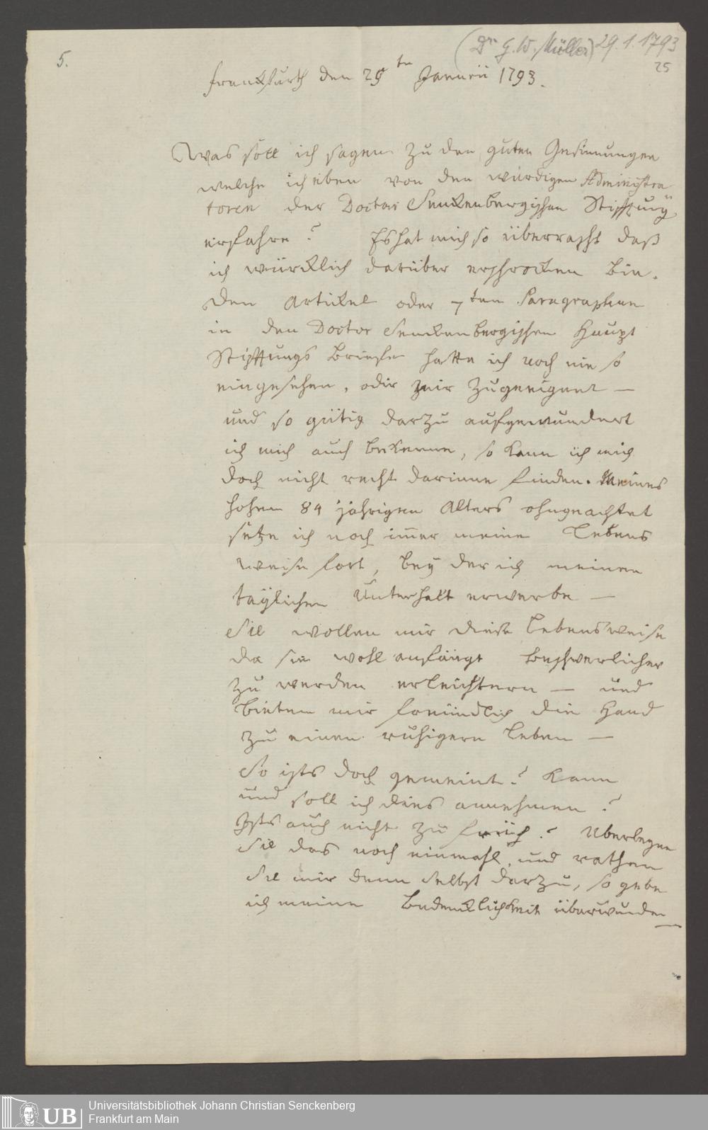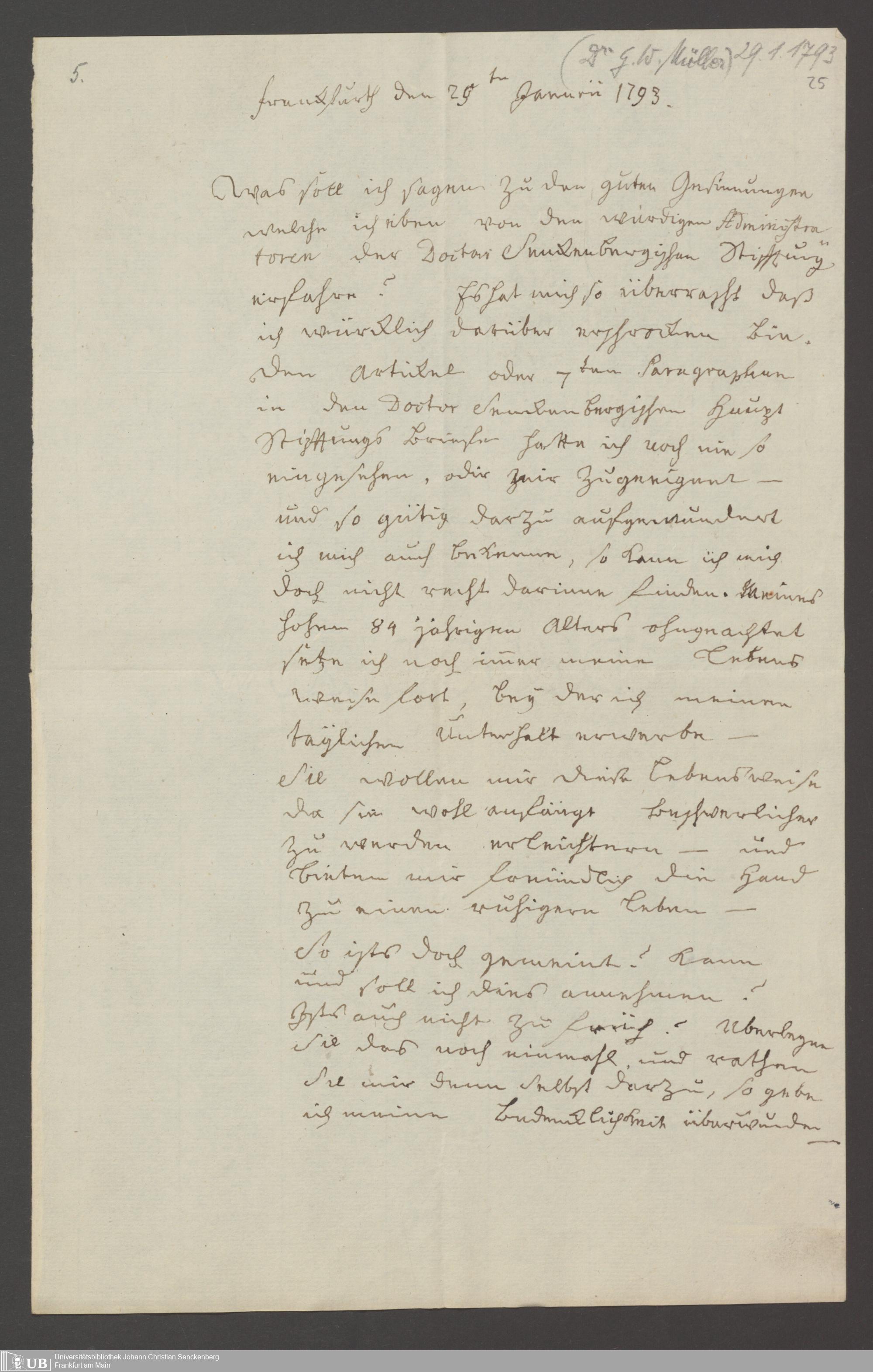 B 5 Dr. Senckenbergische Stiftung, 139 - Erklärung der Administration auf einen Antrag auf Zahlung von Witwenpensionen