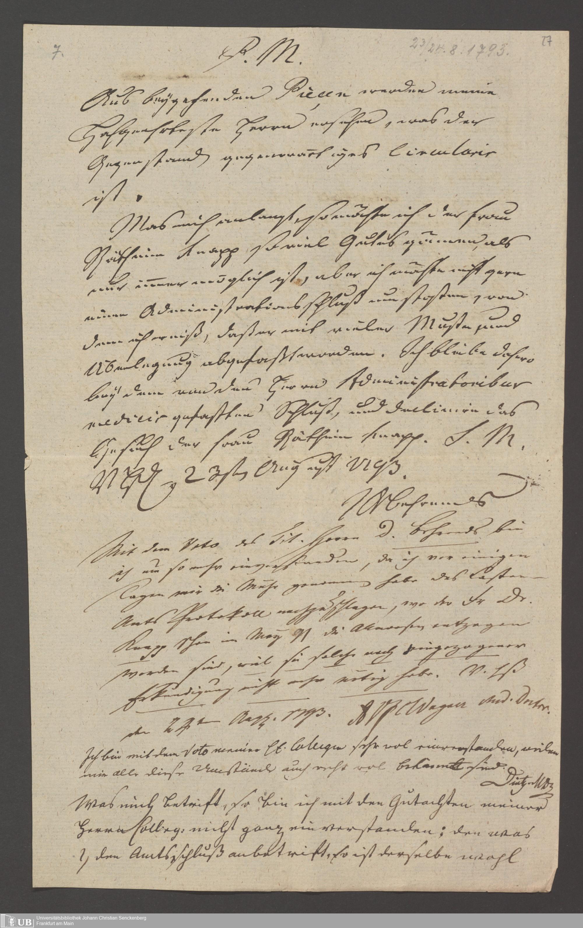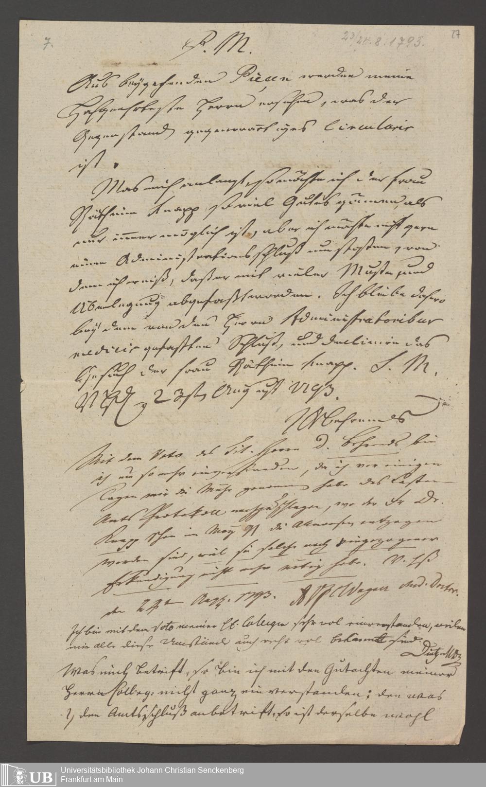 B 5 Dr. Senckenbergische Stiftung, 139 - Erklärung der Administration auf einen Antrag auf Zahlung von Witwenpensionen