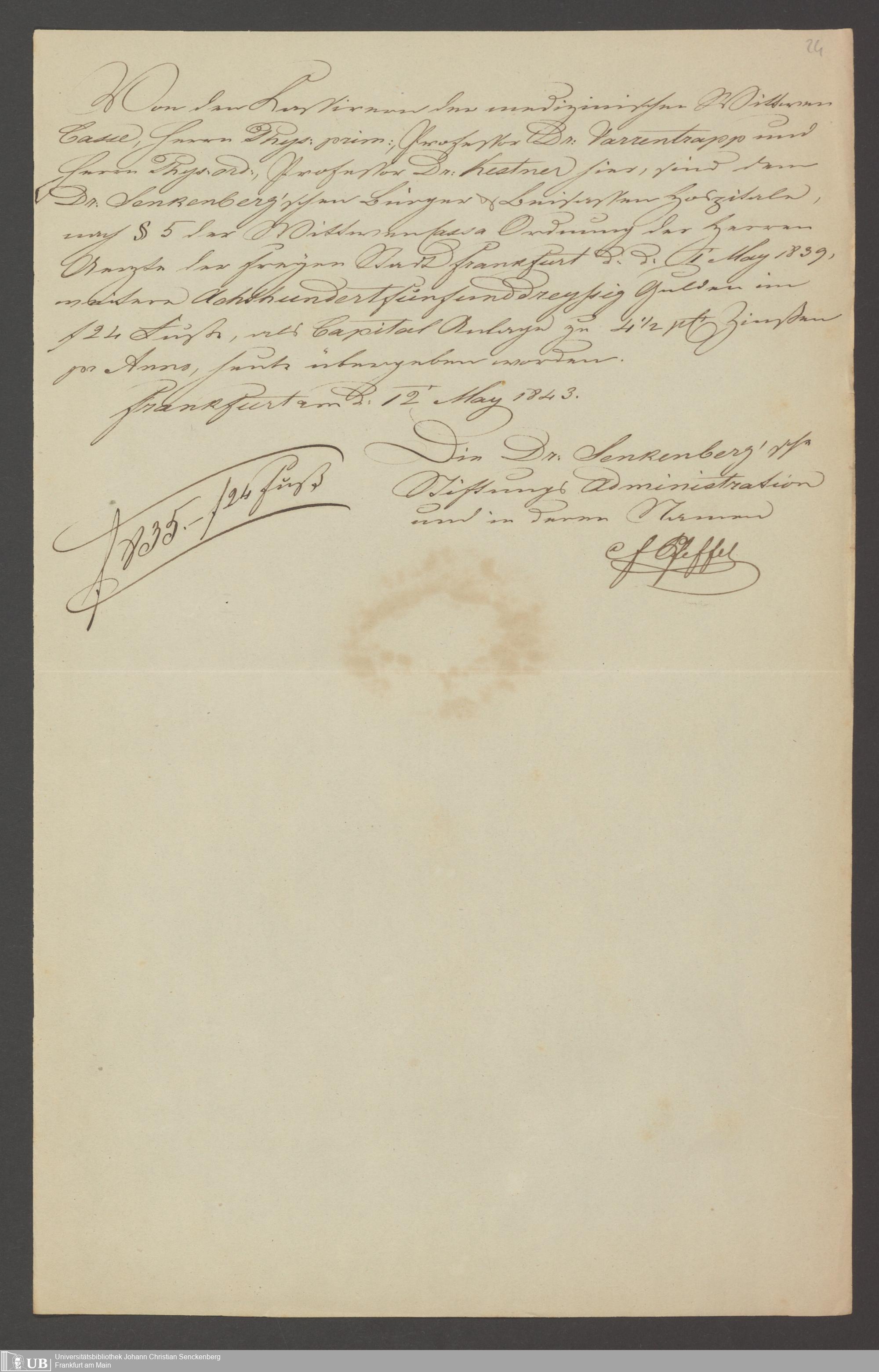 B 5 Dr. Senckenbergische Stiftung, 141 - Witwenkasse III