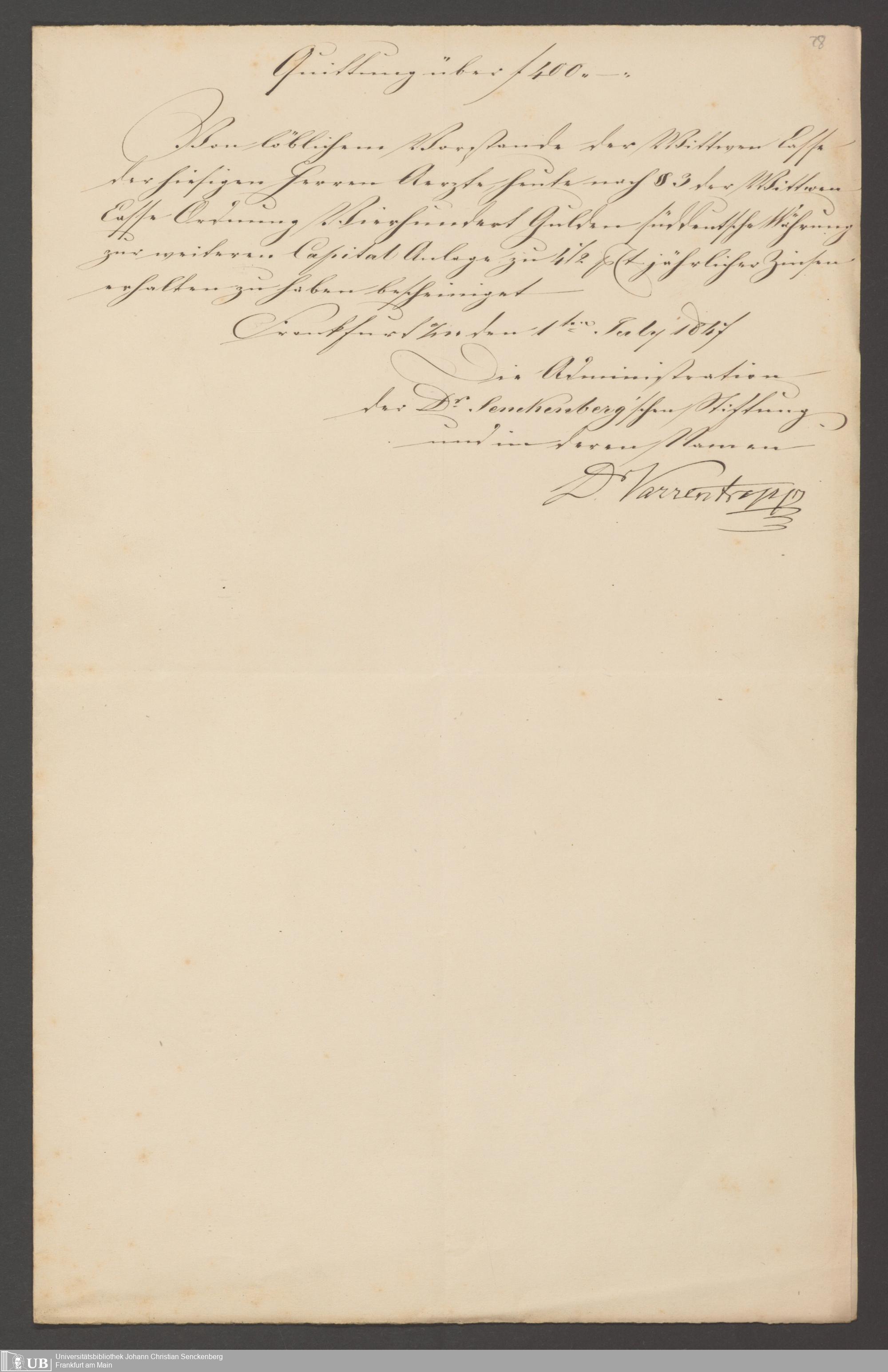 B 5 Dr. Senckenbergische Stiftung, 141 - Witwenkasse III