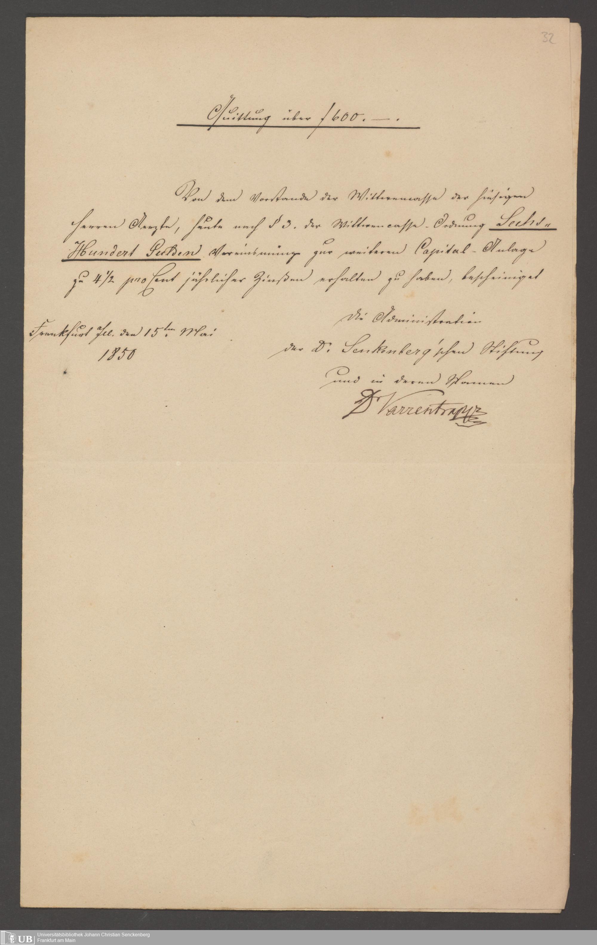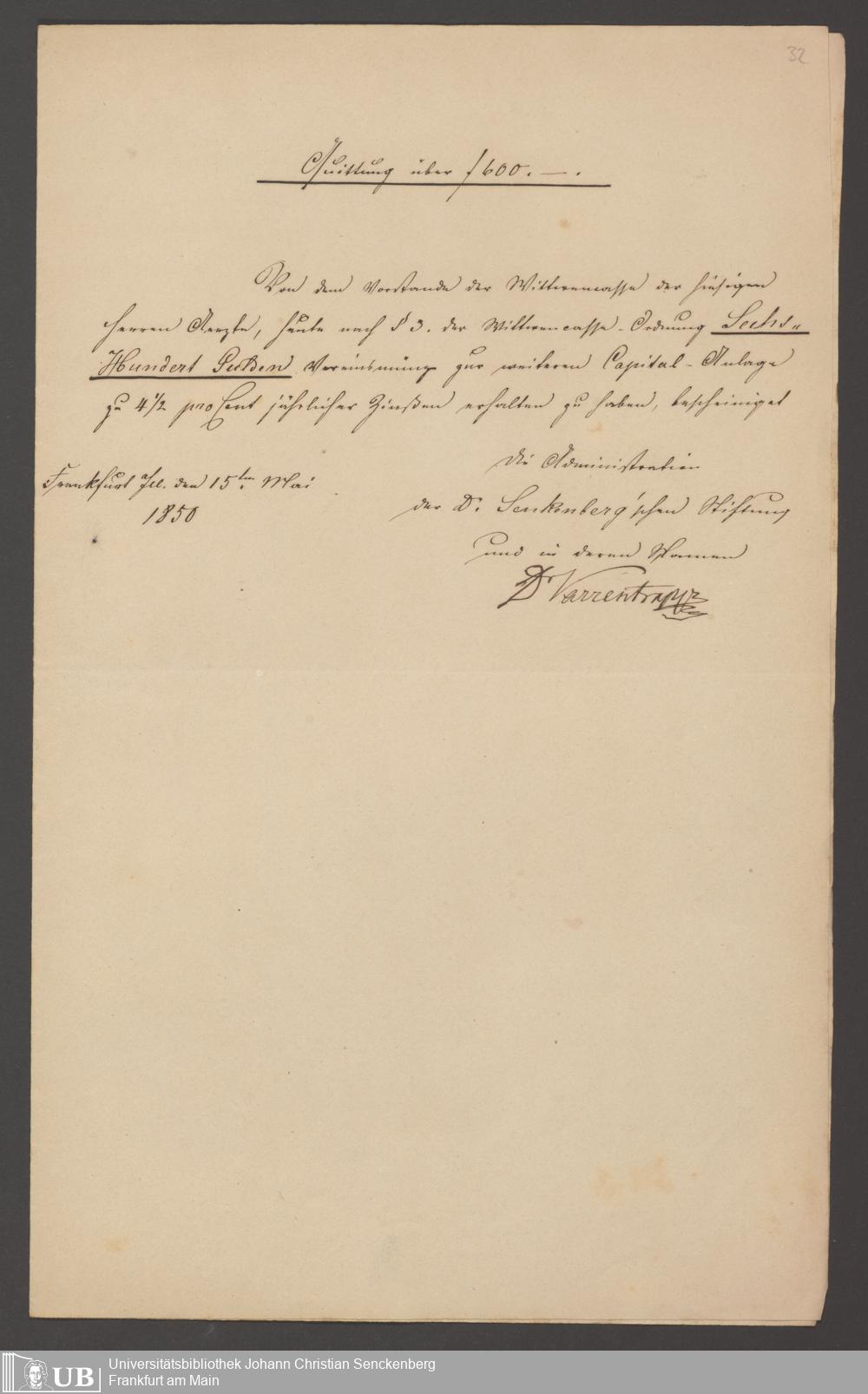 B 5 Dr. Senckenbergische Stiftung, 141 - Witwenkasse III