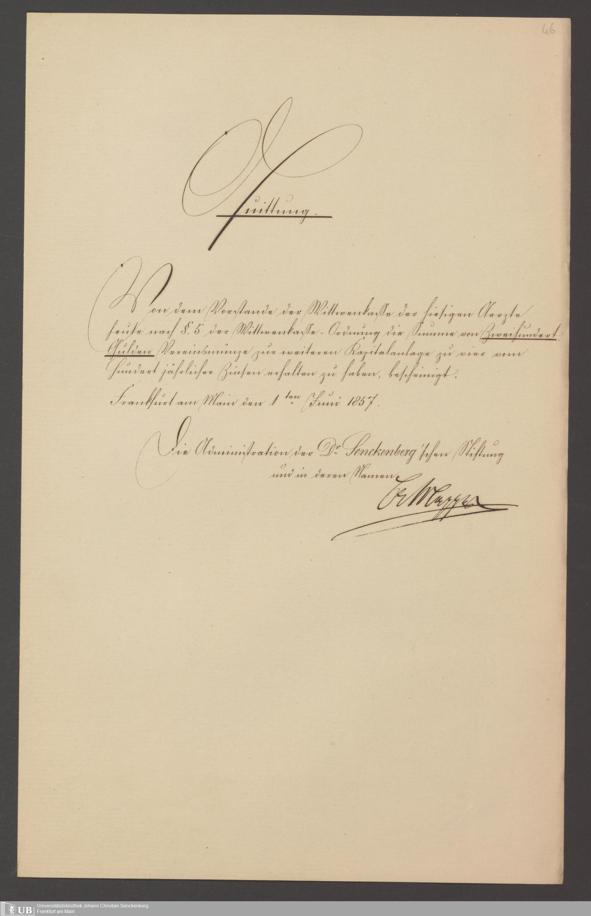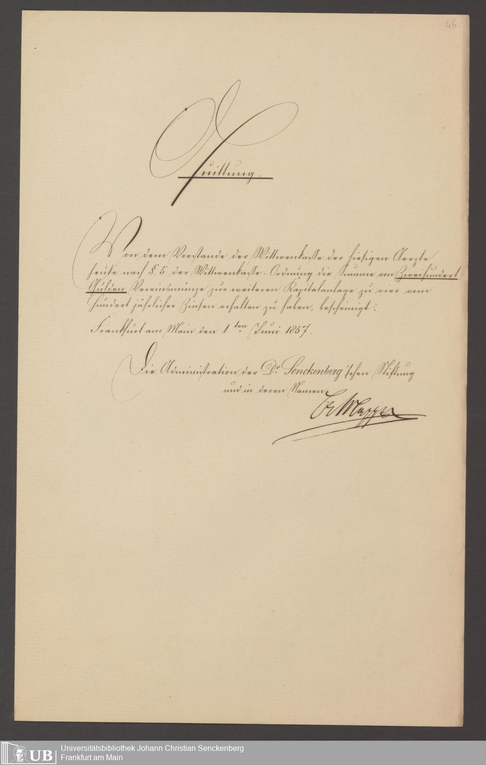 B 5 Dr. Senckenbergische Stiftung, 141 - Witwenkasse III