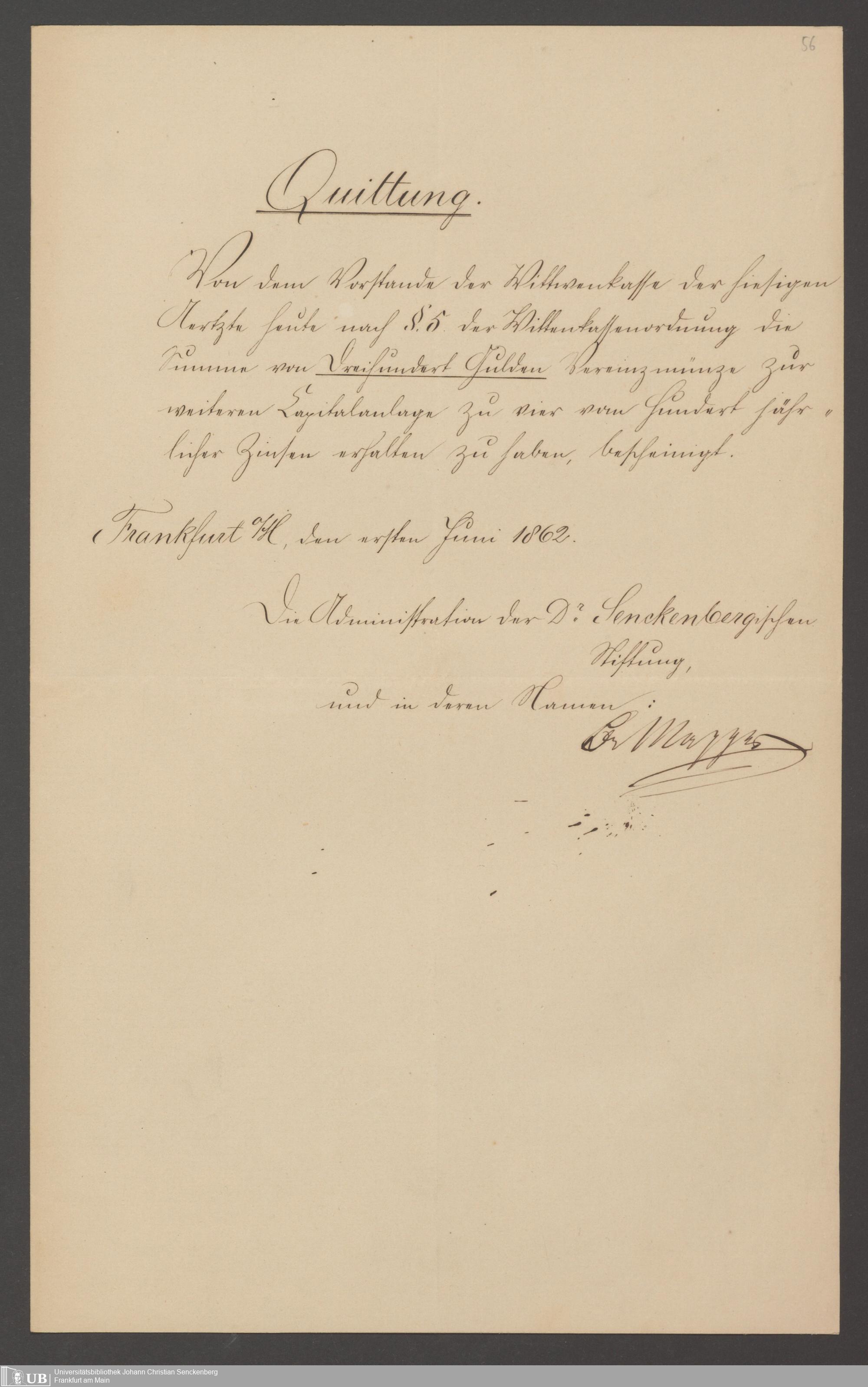B 5 Dr. Senckenbergische Stiftung, 141 - Witwenkasse III