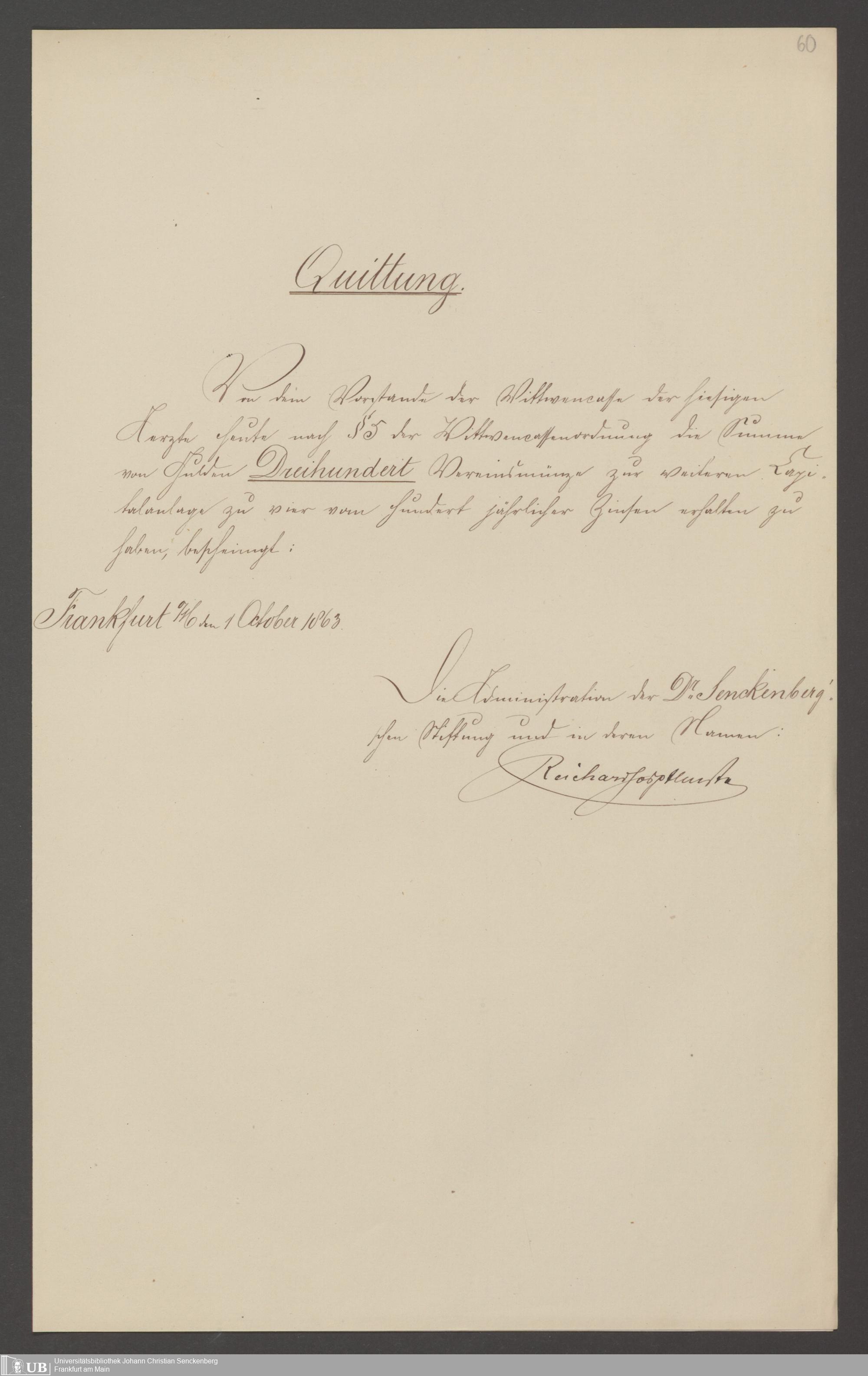 B 5 Dr. Senckenbergische Stiftung, 141 - Witwenkasse III
