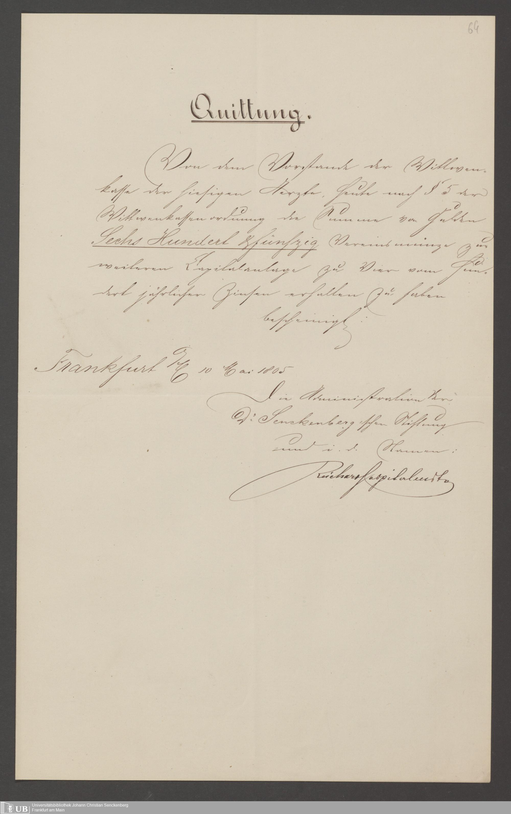 B 5 Dr. Senckenbergische Stiftung, 141 - Witwenkasse III