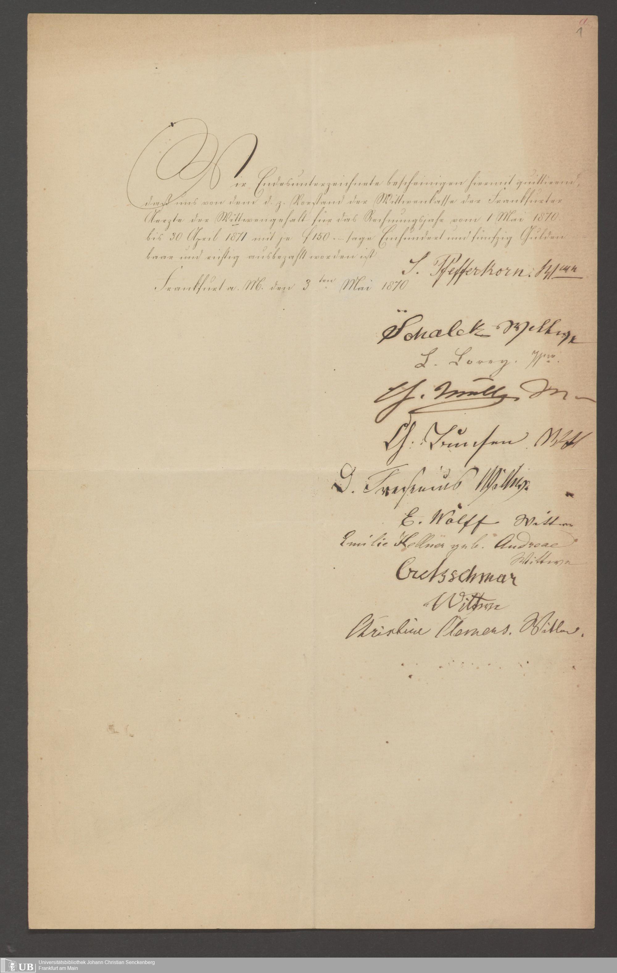 B 5 Dr. Senckenbergische Stiftung, 142 - Witwenkasse IV