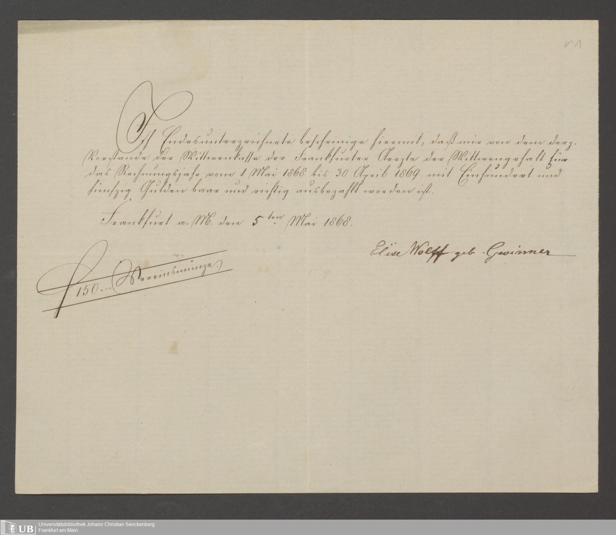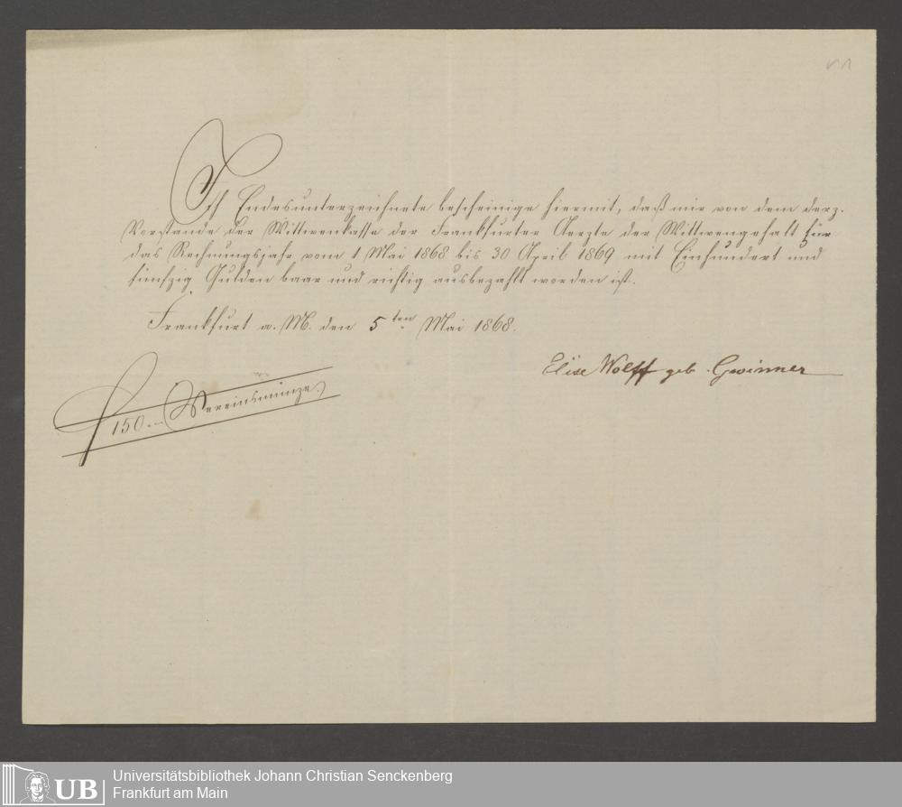 B 5 Dr. Senckenbergische Stiftung, 142 - Witwenkasse IV