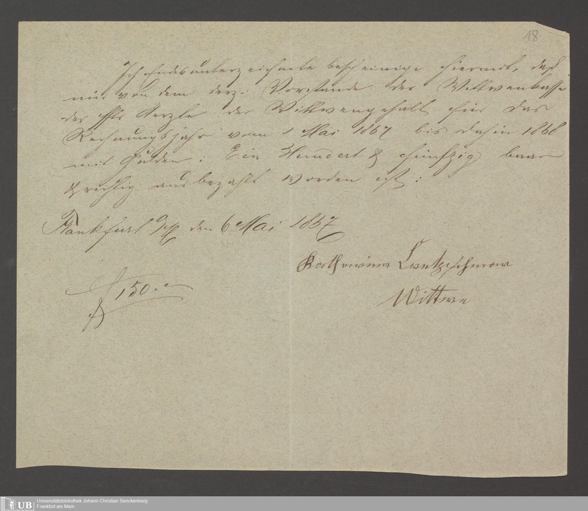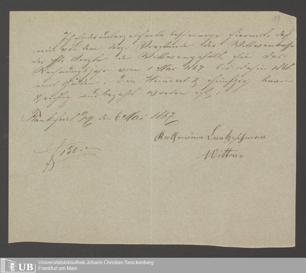 B 5 Dr. Senckenbergische Stiftung, 142 - Witwenkasse IV