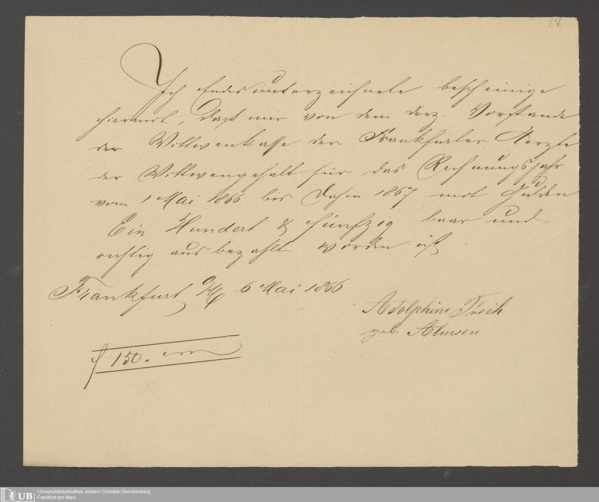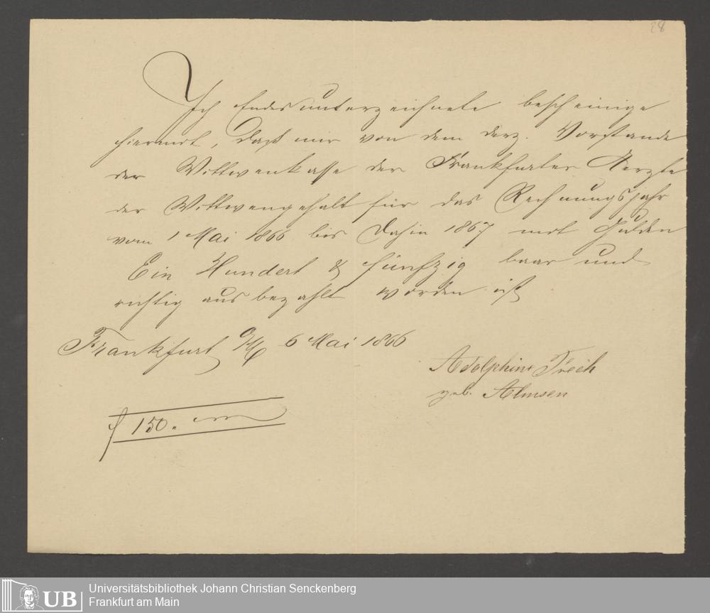 B 5 Dr. Senckenbergische Stiftung, 142 - Witwenkasse IV