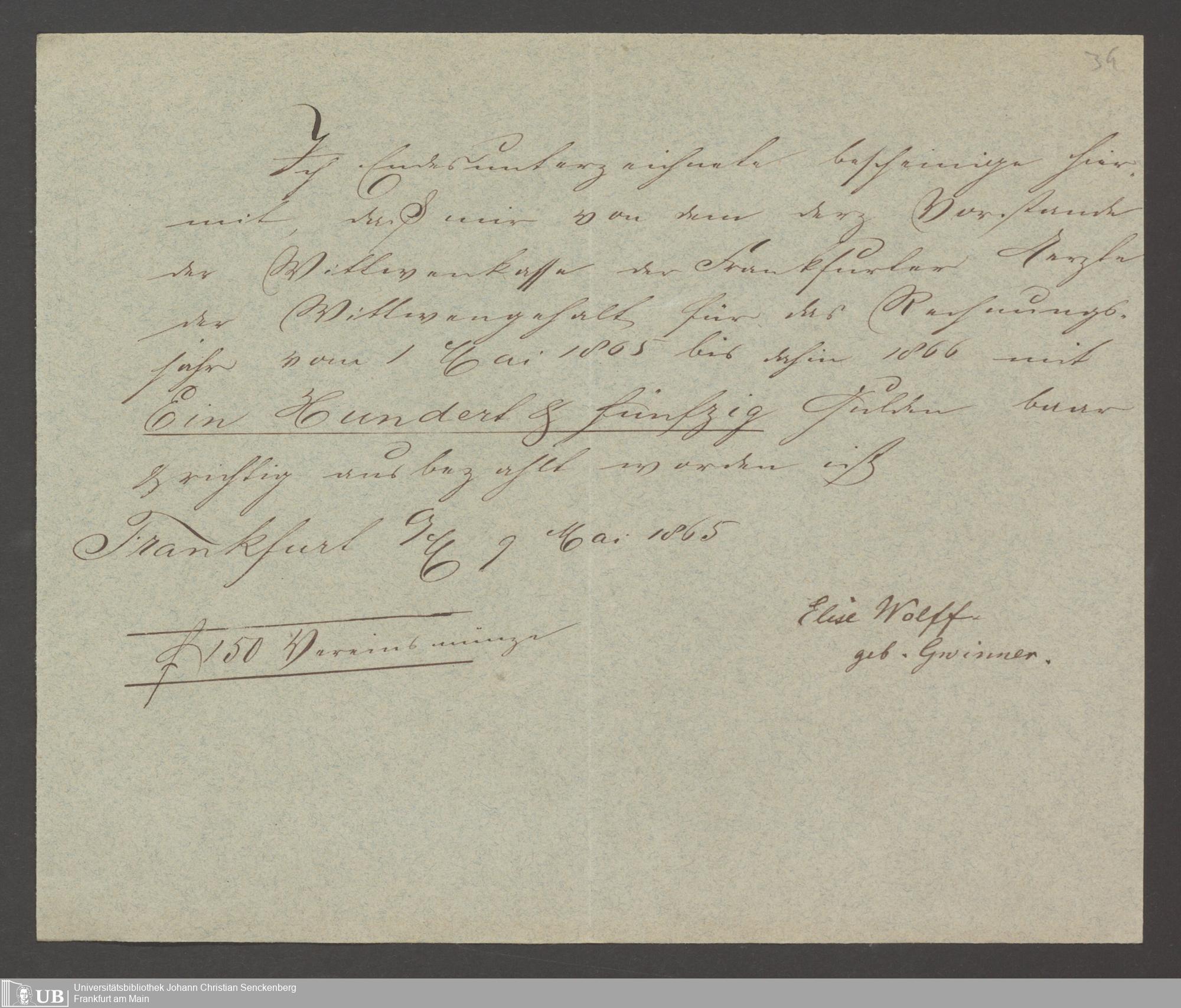 B 5 Dr. Senckenbergische Stiftung, 142 - Witwenkasse IV