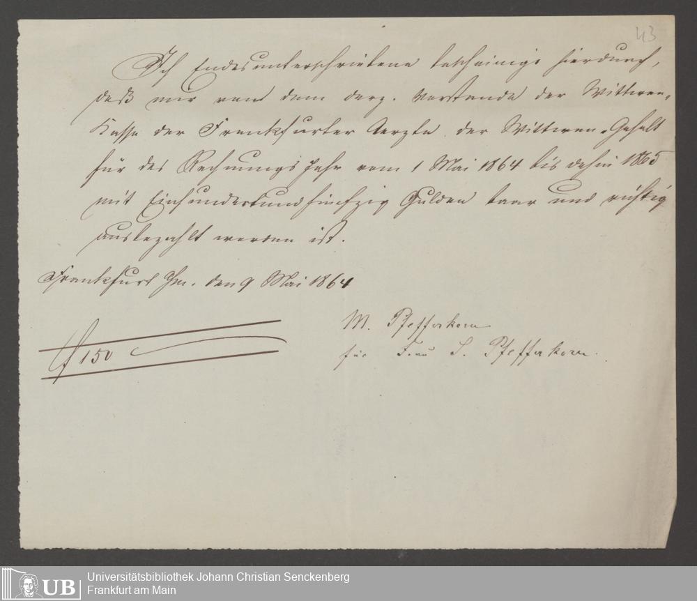 B 5 Dr. Senckenbergische Stiftung, 142 - Witwenkasse IV