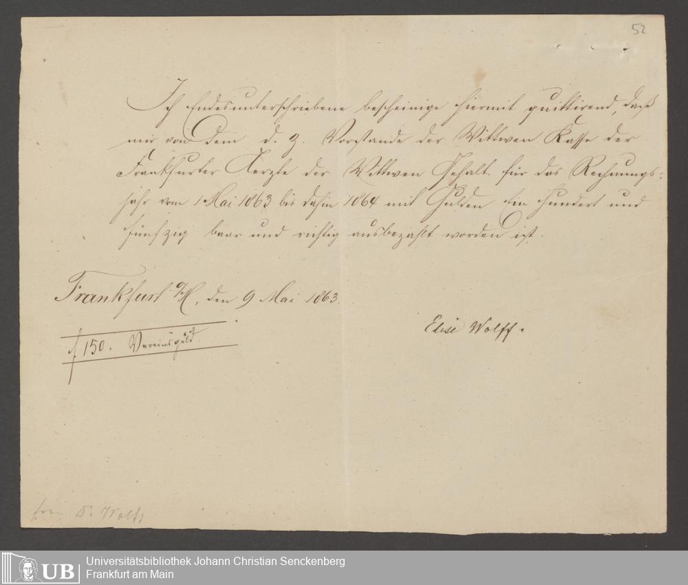 B 5 Dr. Senckenbergische Stiftung, 142 - Witwenkasse IV