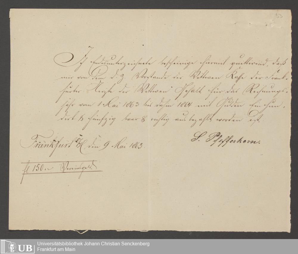 B 5 Dr. Senckenbergische Stiftung, 142 - Witwenkasse IV