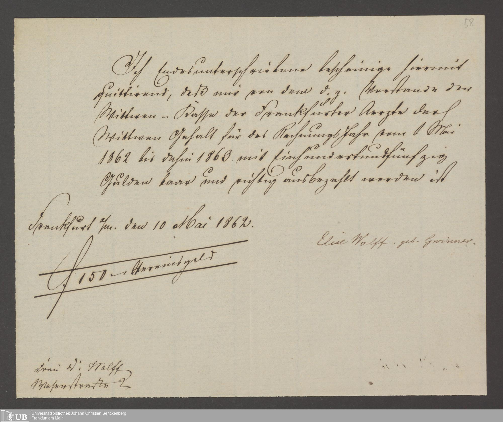 B 5 Dr. Senckenbergische Stiftung, 142 - Witwenkasse IV