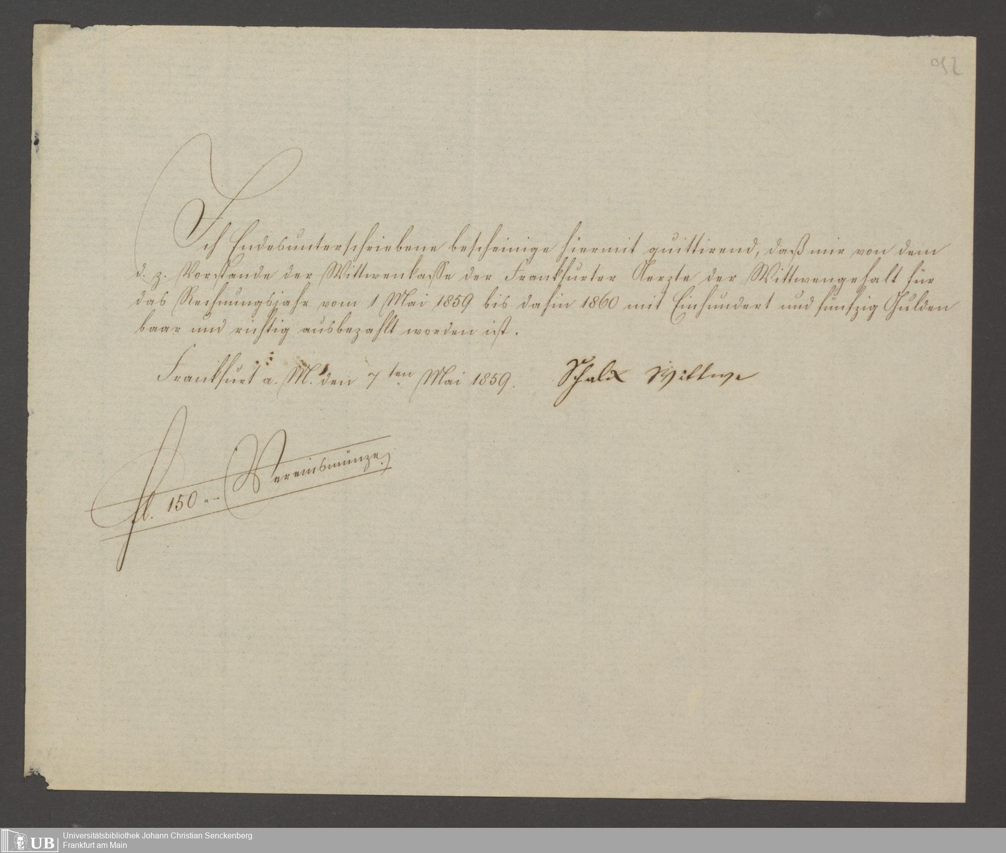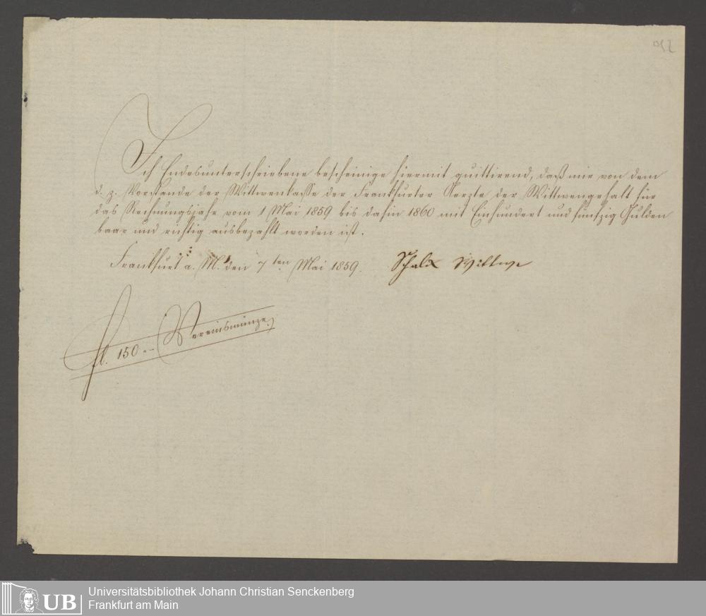 B 5 Dr. Senckenbergische Stiftung, 142 - Witwenkasse IV