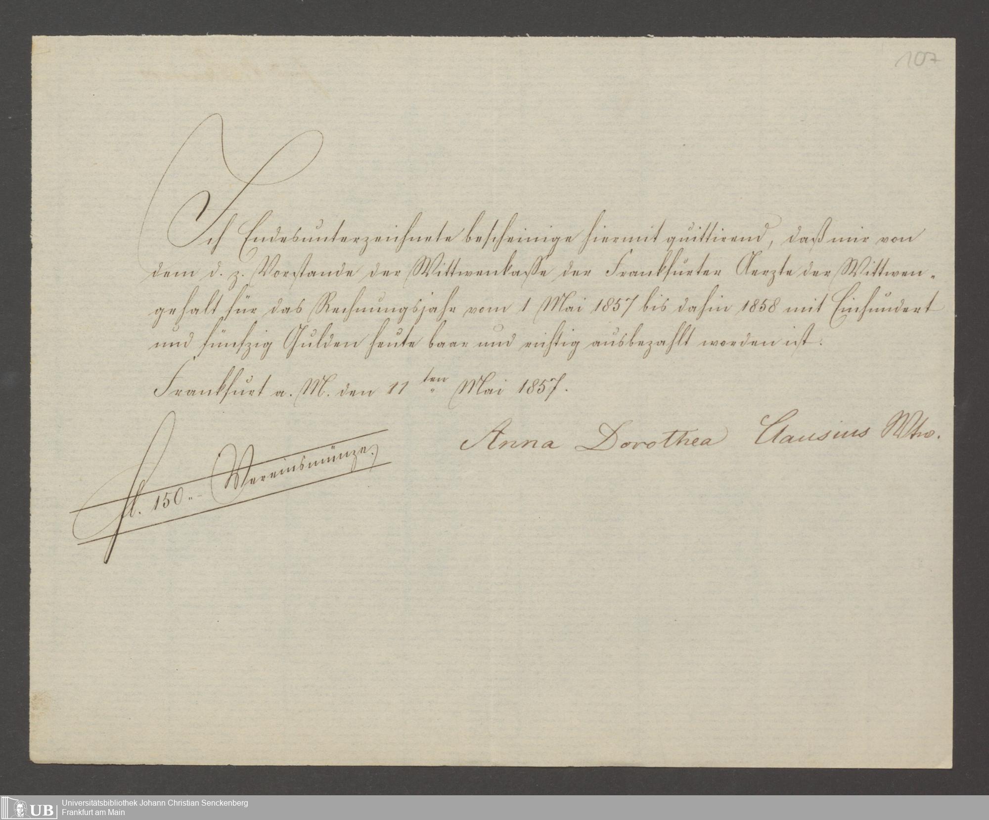 B 5 Dr. Senckenbergische Stiftung, 142 - Witwenkasse IV