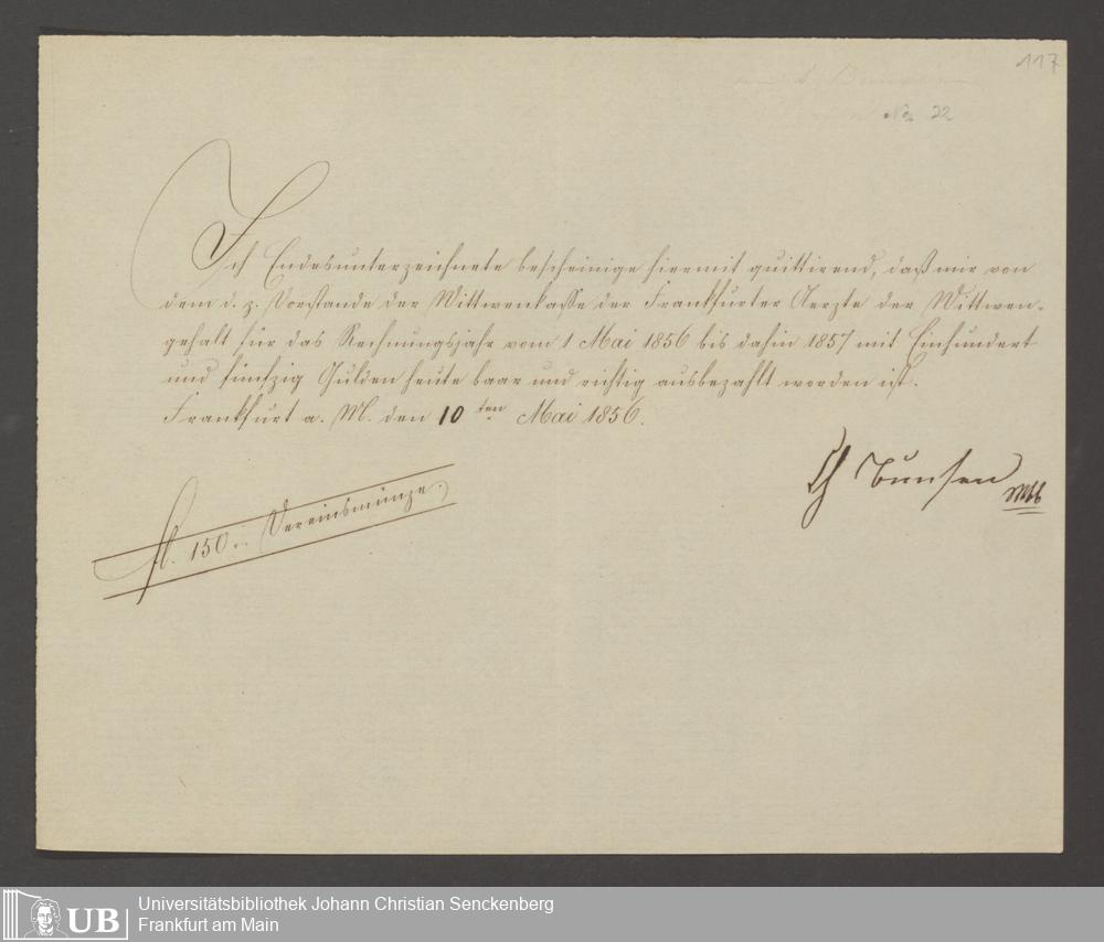B 5 Dr. Senckenbergische Stiftung, 142 - Witwenkasse IV
