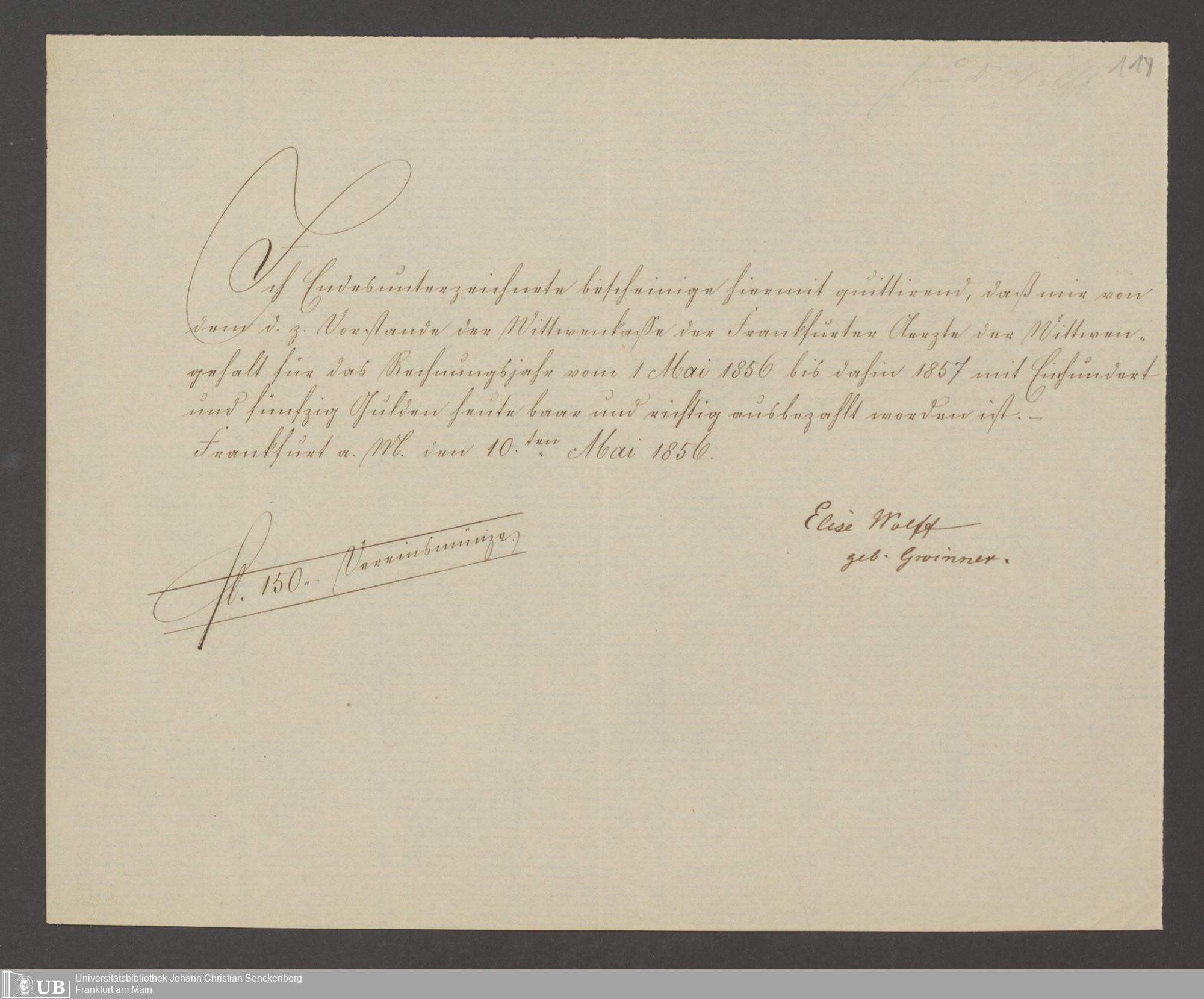B 5 Dr. Senckenbergische Stiftung, 142 - Witwenkasse IV