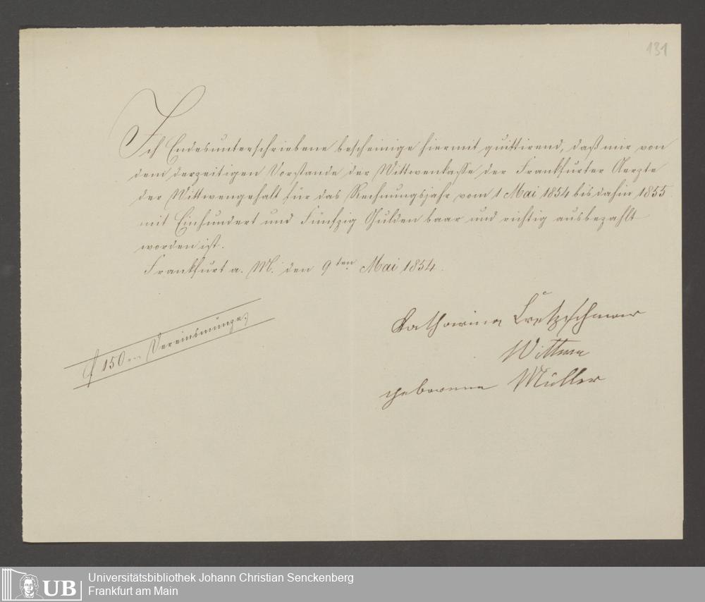 B 5 Dr. Senckenbergische Stiftung, 142 - Witwenkasse IV