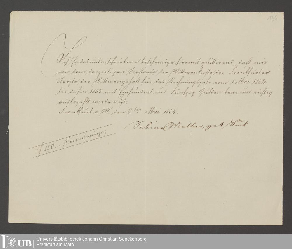 B 5 Dr. Senckenbergische Stiftung, 142 - Witwenkasse IV