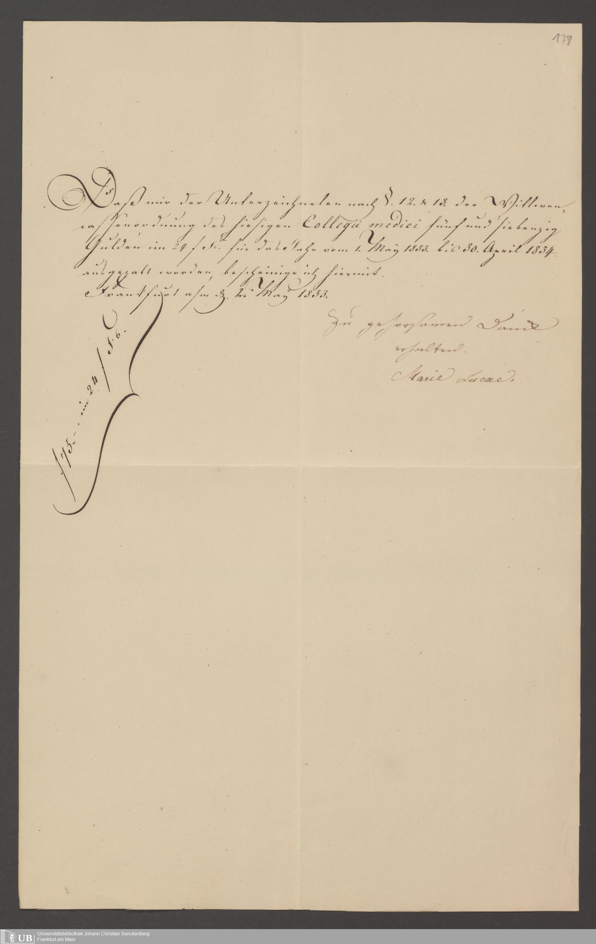 B 5 Dr. Senckenbergische Stiftung, 142 - Witwenkasse IV