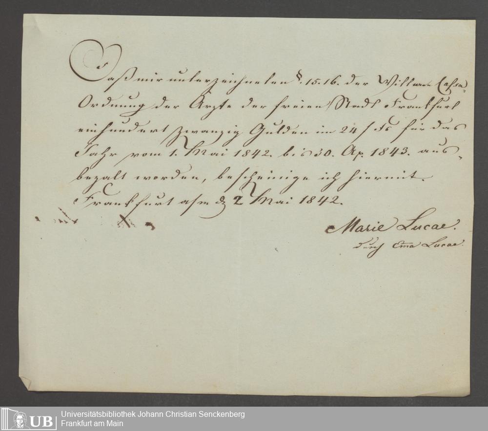 B 5 Dr. Senckenbergische Stiftung, 142 - Witwenkasse IV