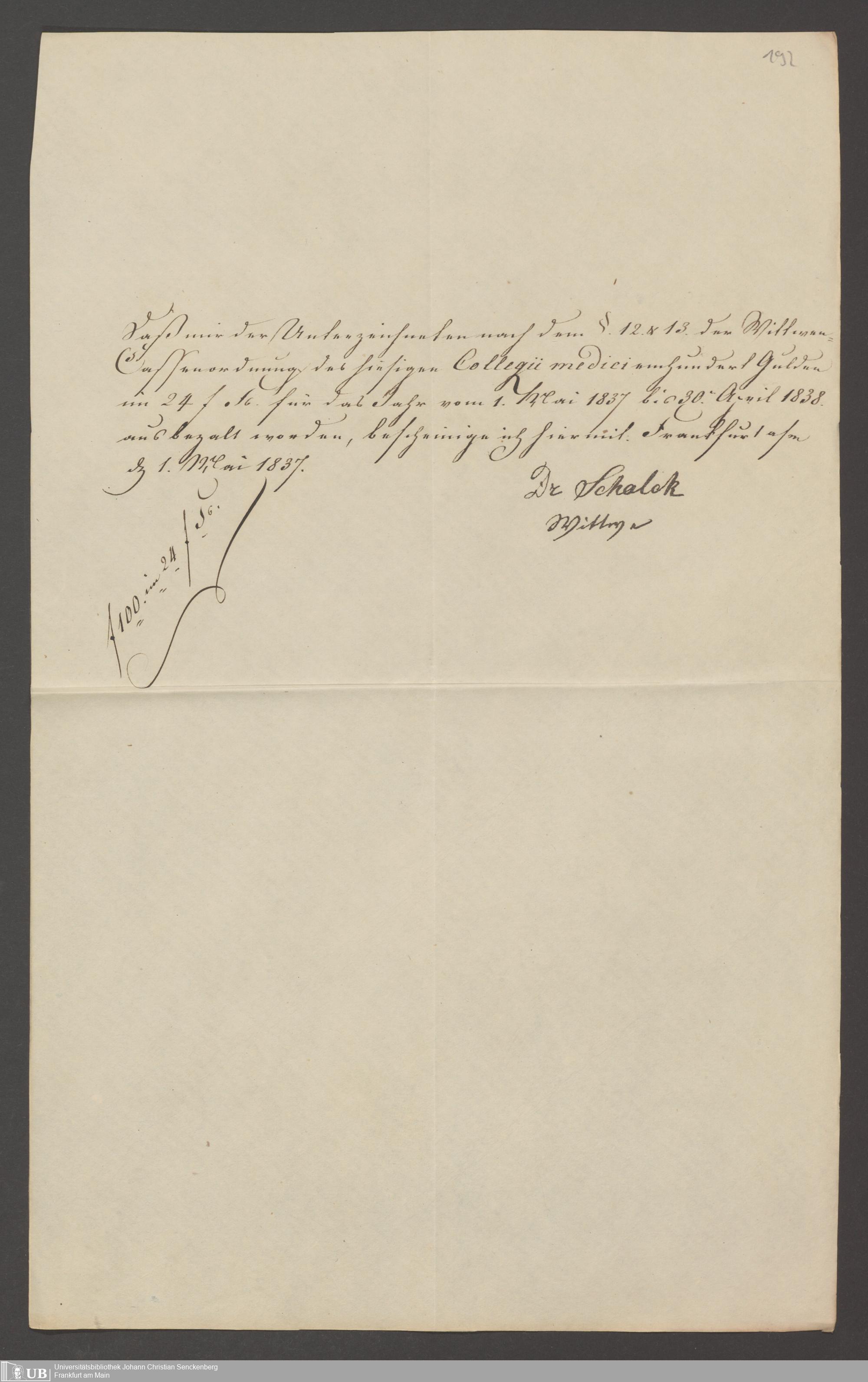 B 5 Dr. Senckenbergische Stiftung, 142 - Witwenkasse IV