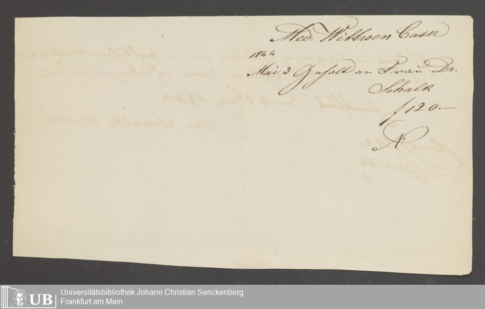 B 5 Dr. Senckenbergische Stiftung, 142 - Witwenkasse IV