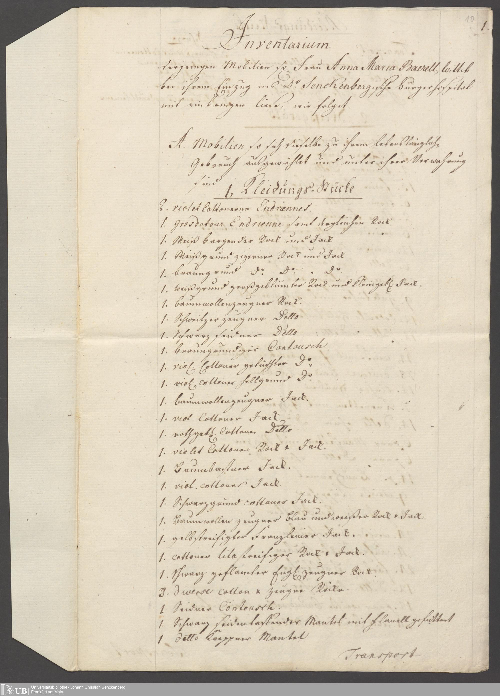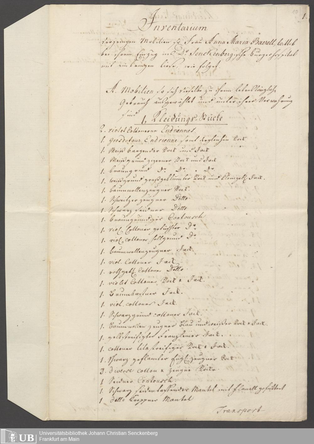 B 5 Dr. Senckenbergische Stiftung, 151 - Leibrentenverträge und Hinterlassenschaftsinventare der Pfründner