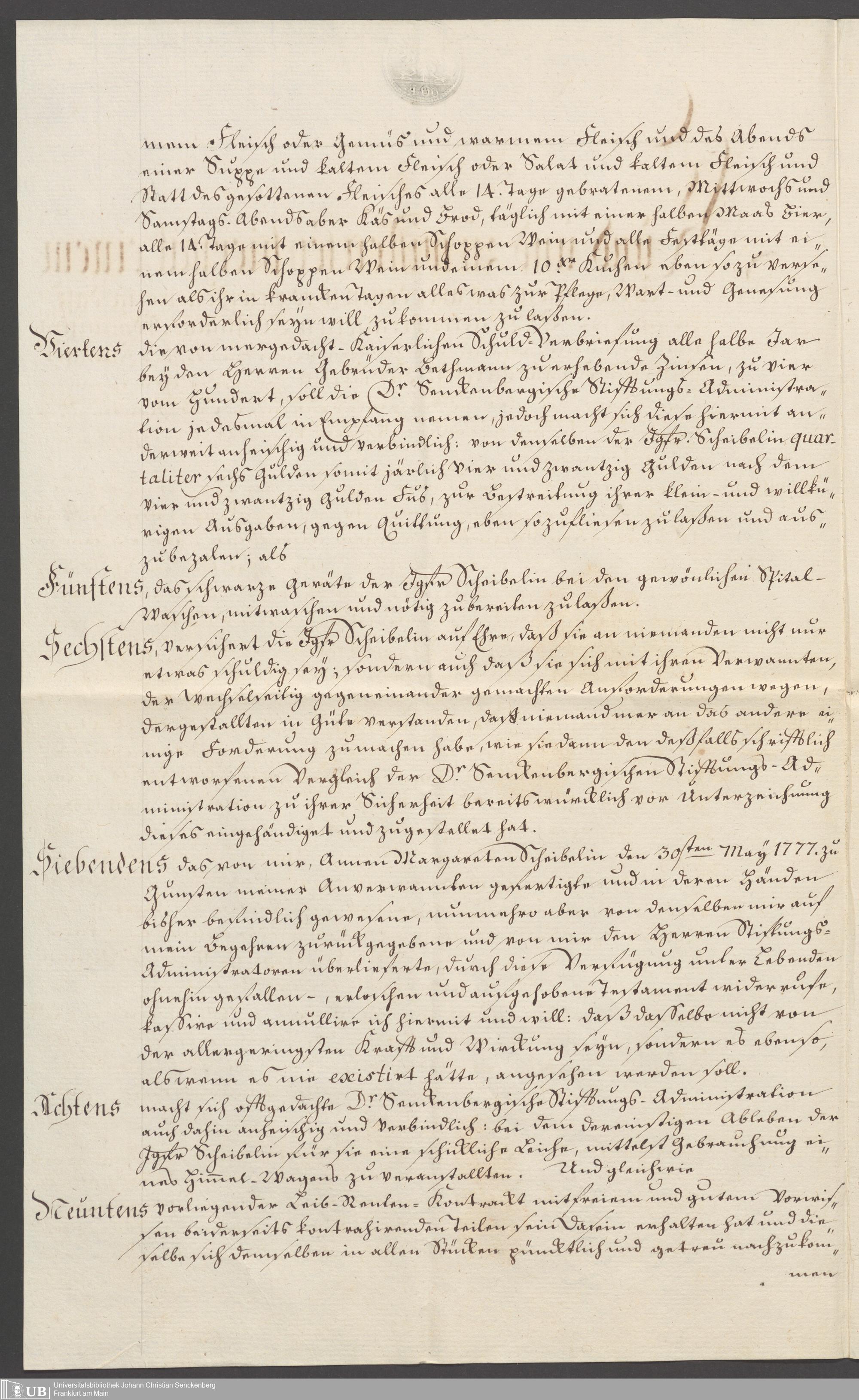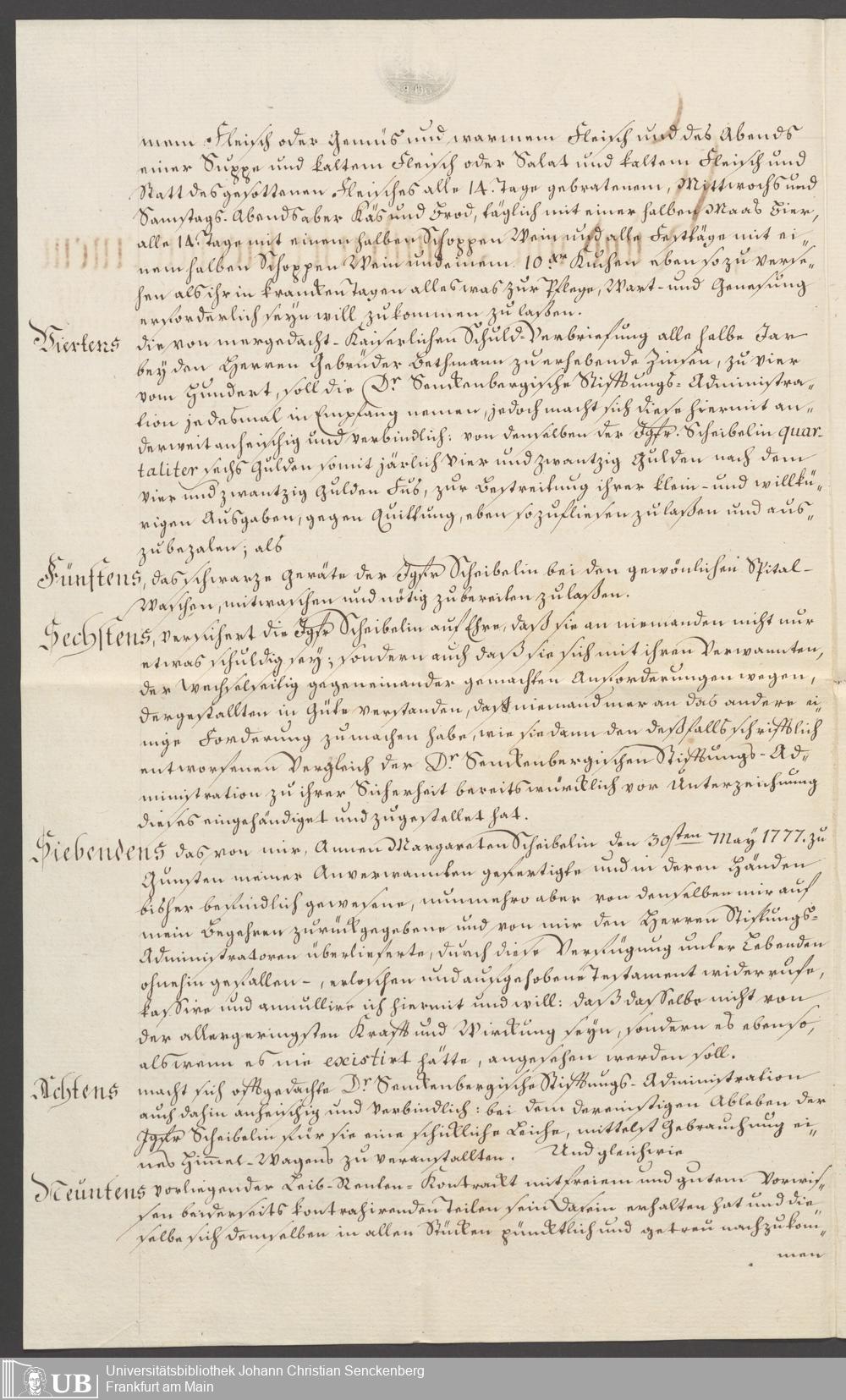 B 5 Dr. Senckenbergische Stiftung, 151 - Leibrentenverträge und Hinterlassenschaftsinventare der Pfründner