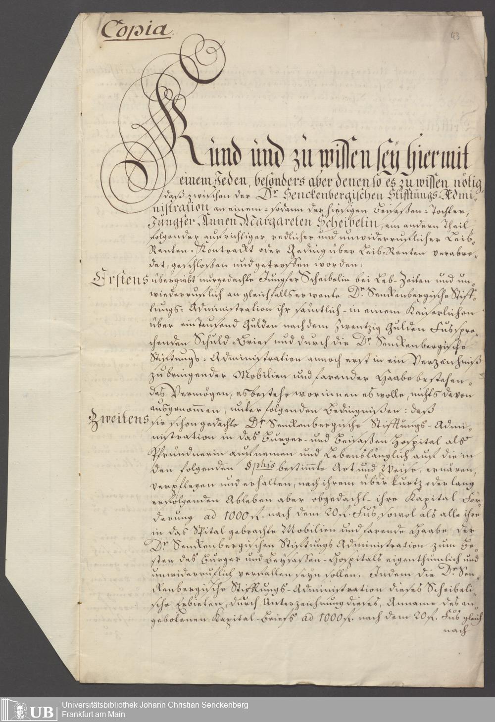 B 5 Dr. Senckenbergische Stiftung, 151 - Leibrentenverträge und Hinterlassenschaftsinventare der Pfründner