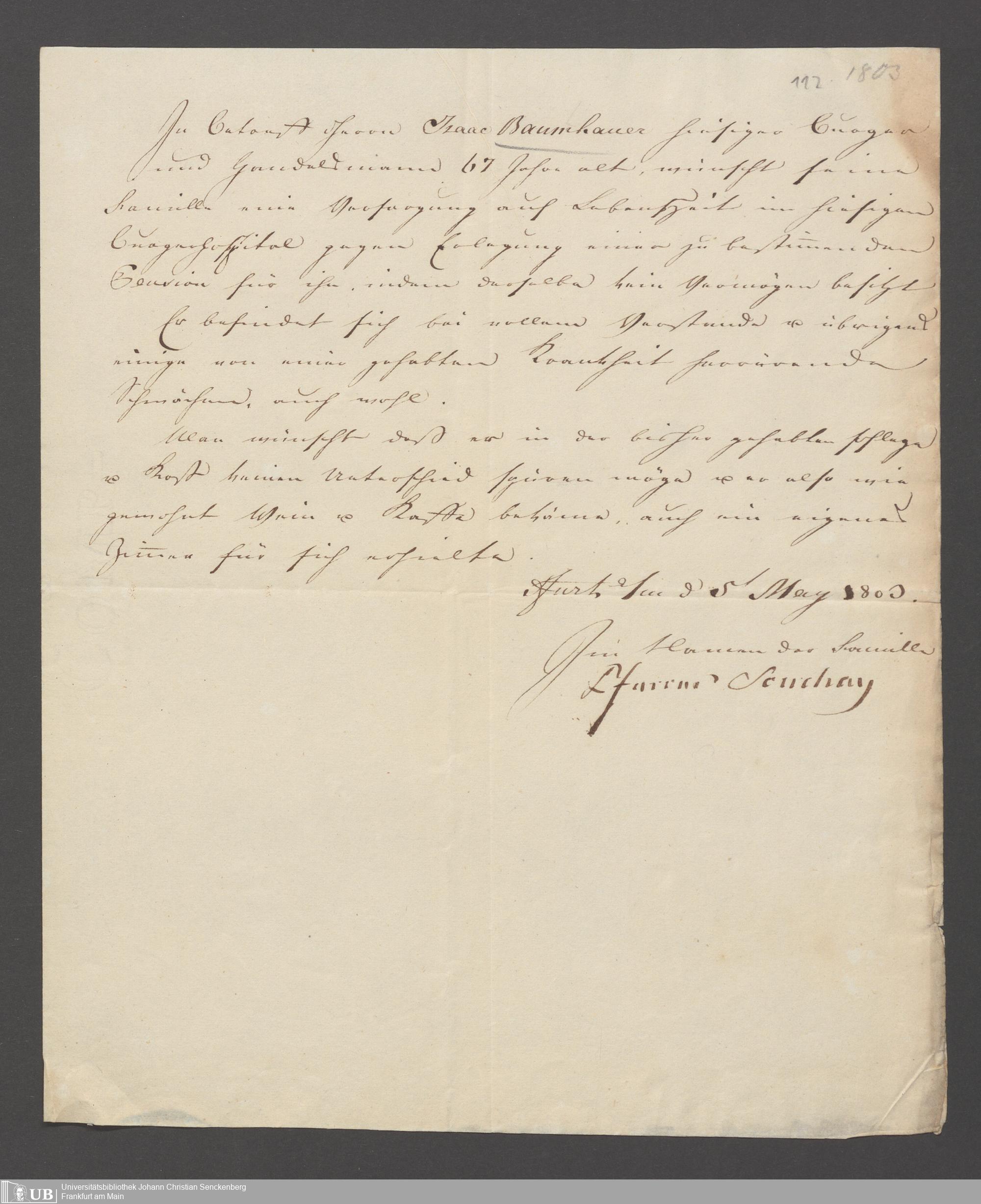 B 5 Dr. Senckenbergische Stiftung, 151 - Leibrentenverträge und Hinterlassenschaftsinventare der Pfründner