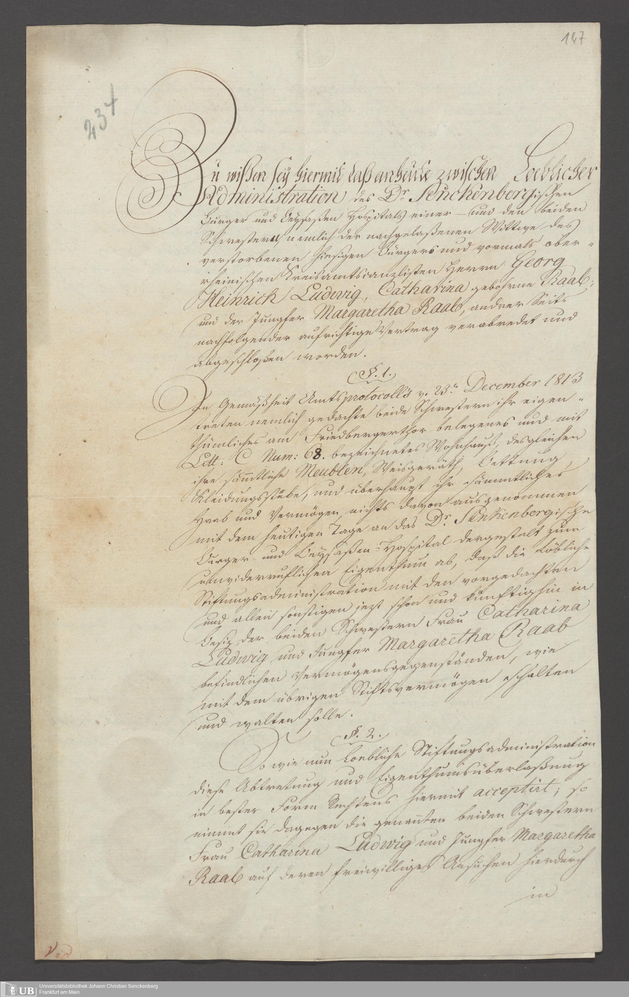B 5 Dr. Senckenbergische Stiftung, 152 - Leibrentenverträge und Hinterlassenschaften der Pfründer
