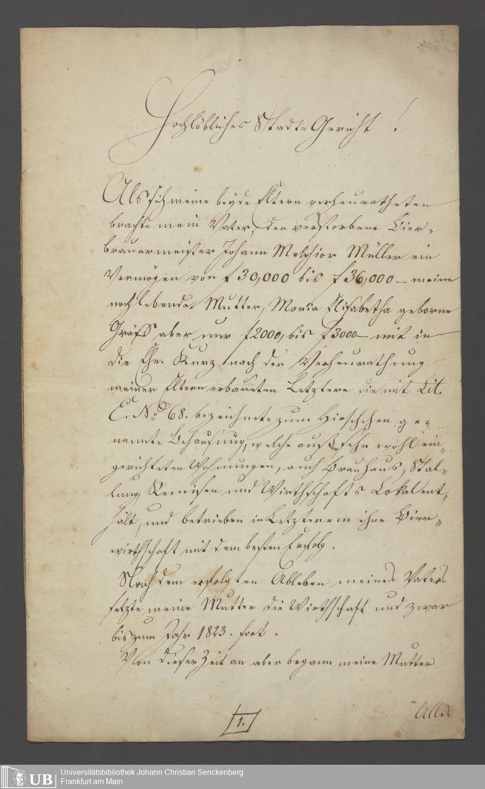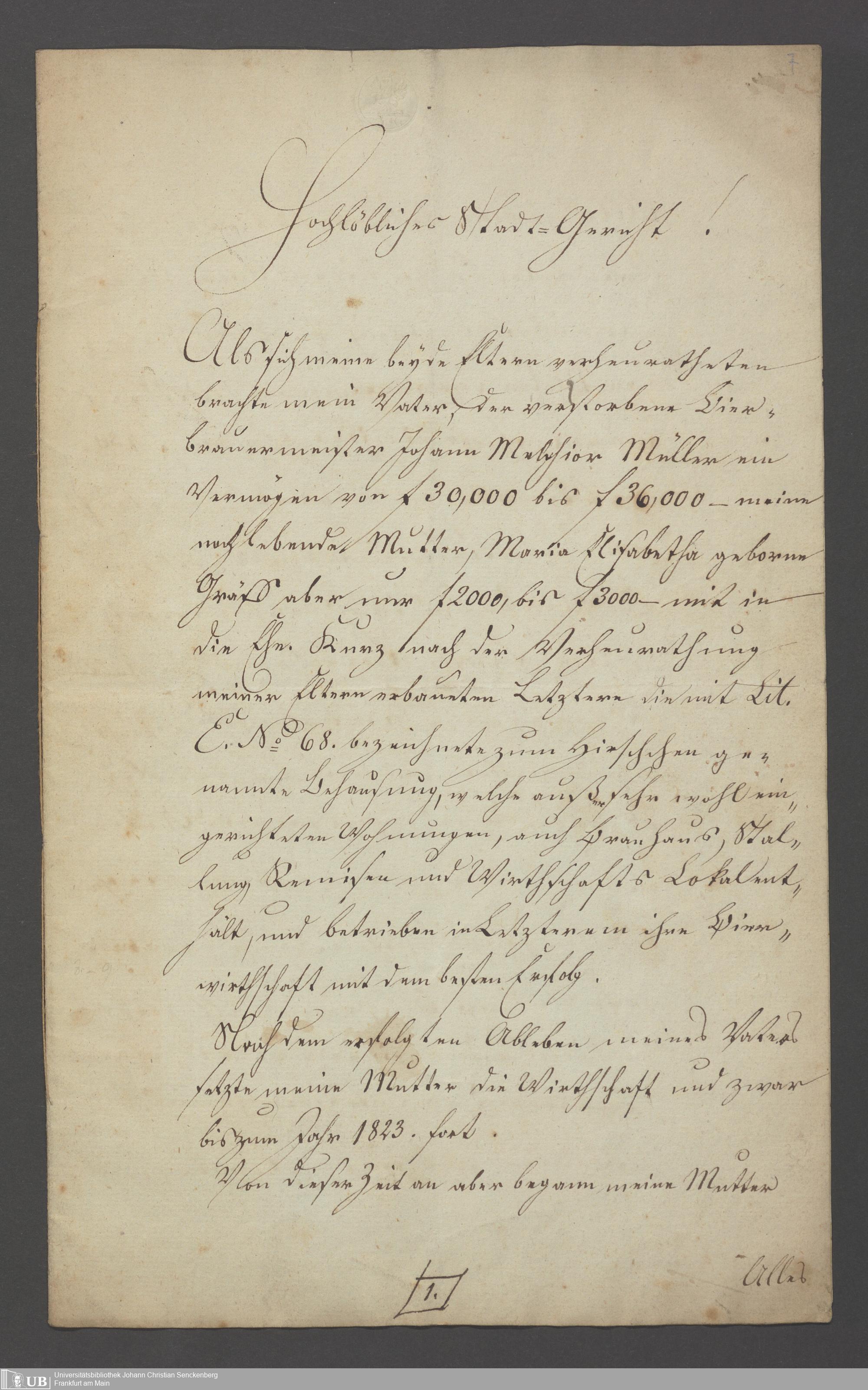 B 5 Dr. Senckenbergische Stiftung, 154 - Akten der Pfründnerin Maria Elisabeth Müller contra Catharina Elisabeth Schulze