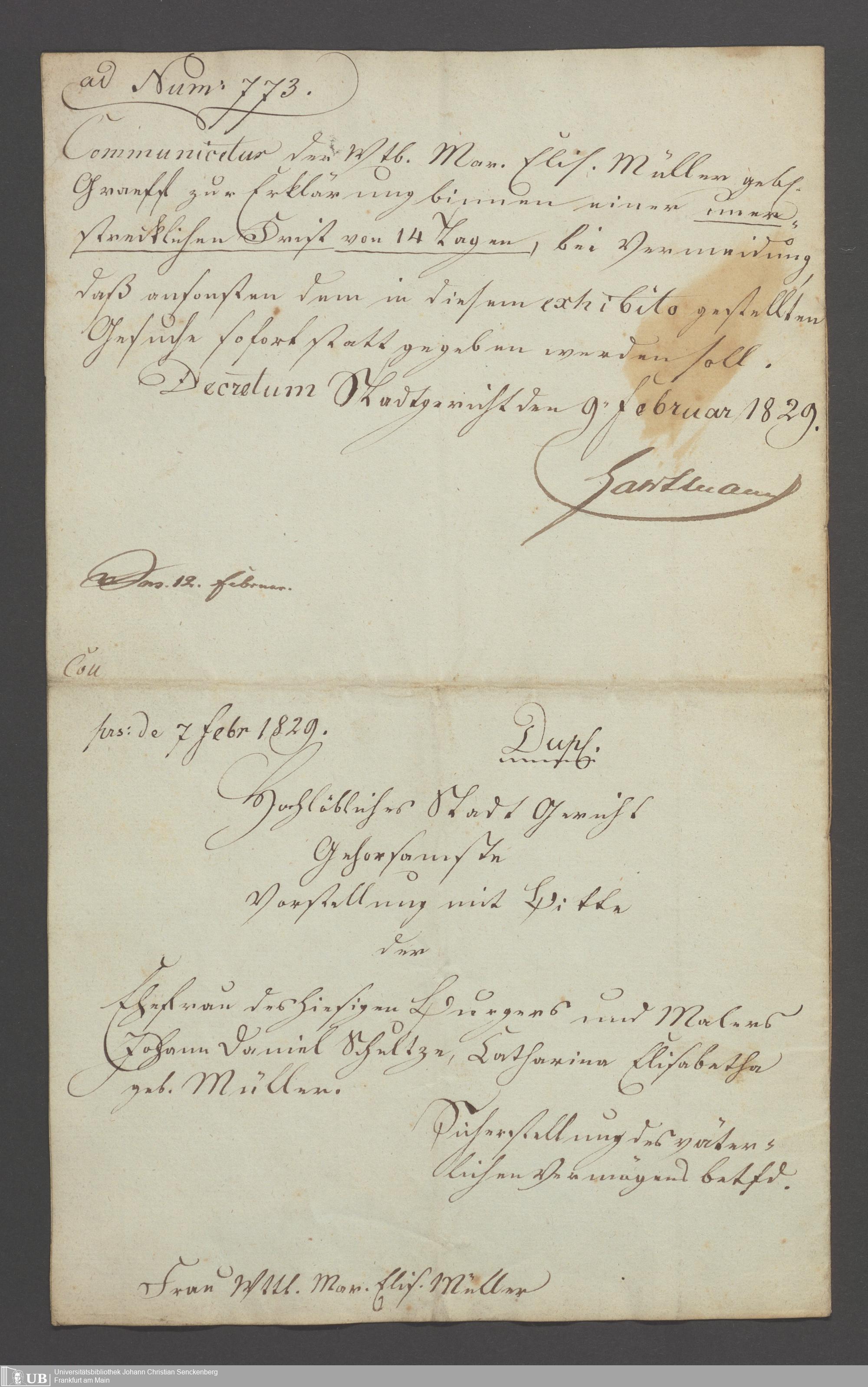 B 5 Dr. Senckenbergische Stiftung, 154 - Akten der Pfründnerin Maria Elisabeth Müller contra Catharina Elisabeth Schulze