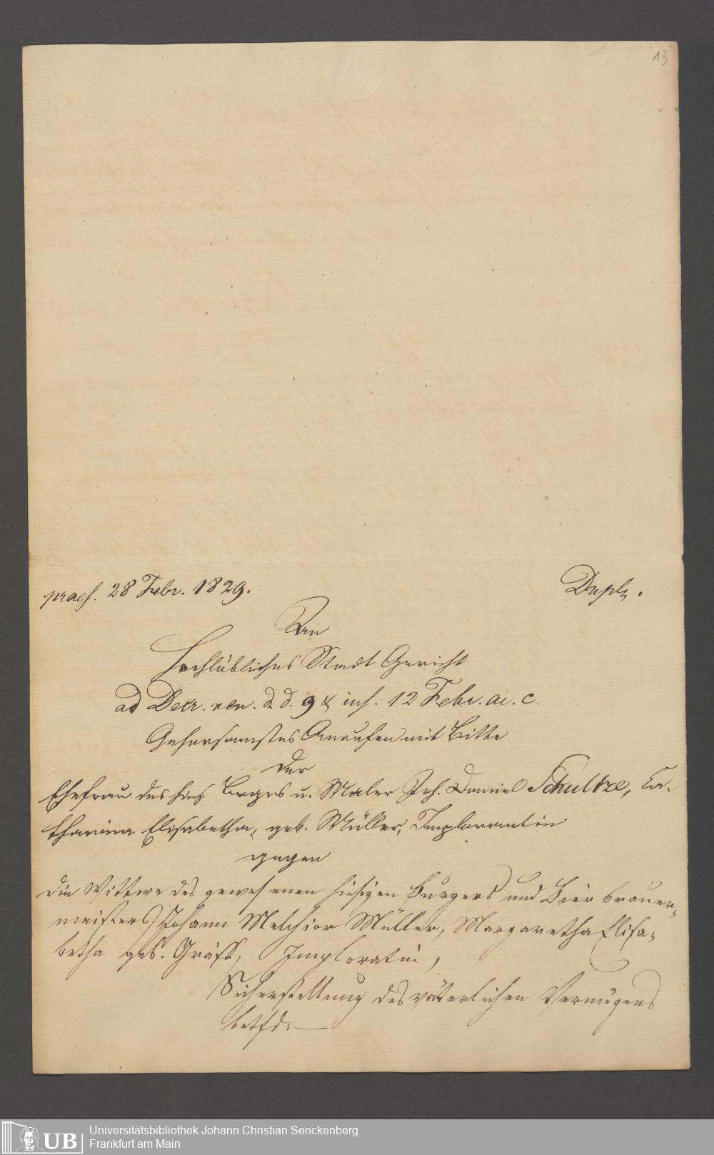 B 5 Dr. Senckenbergische Stiftung, 154 - Akten der Pfründnerin Maria Elisabeth Müller contra Catharina Elisabeth Schulze