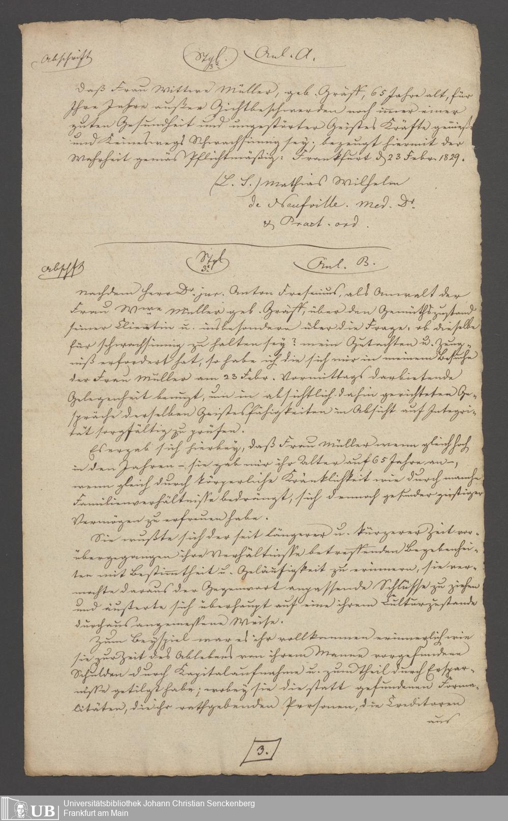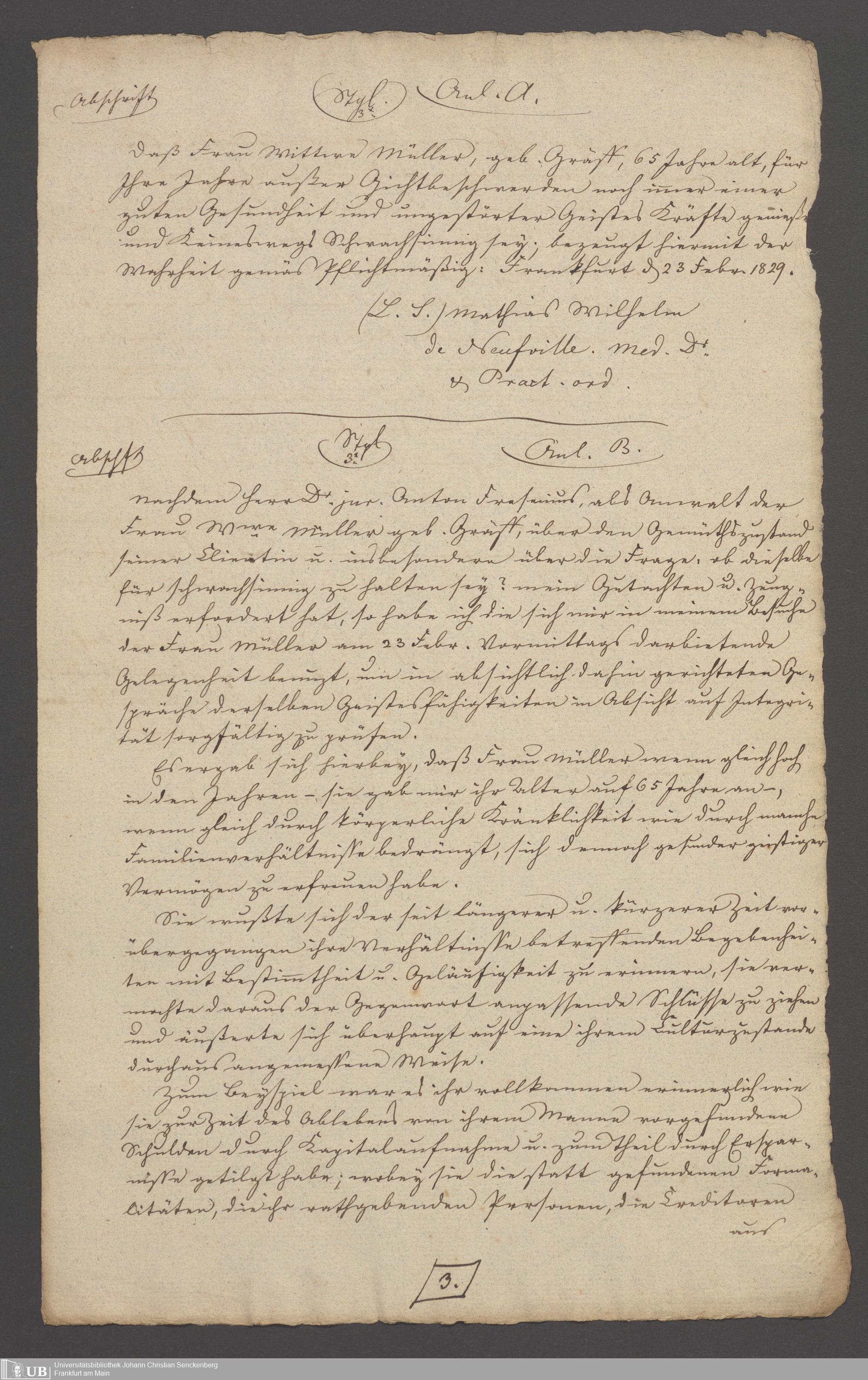 B 5 Dr. Senckenbergische Stiftung, 154 - Akten der Pfründnerin Maria Elisabeth Müller contra Catharina Elisabeth Schulze