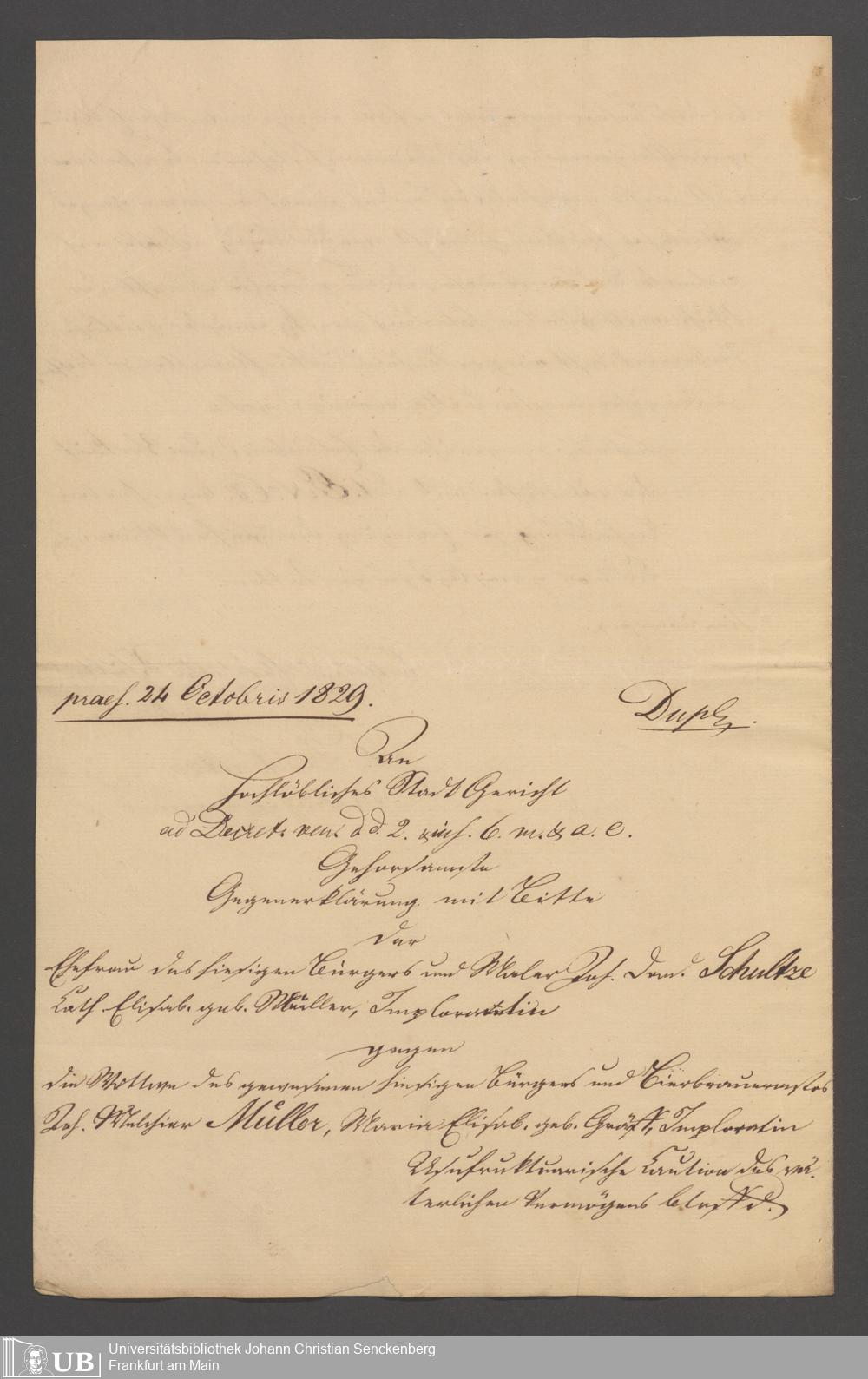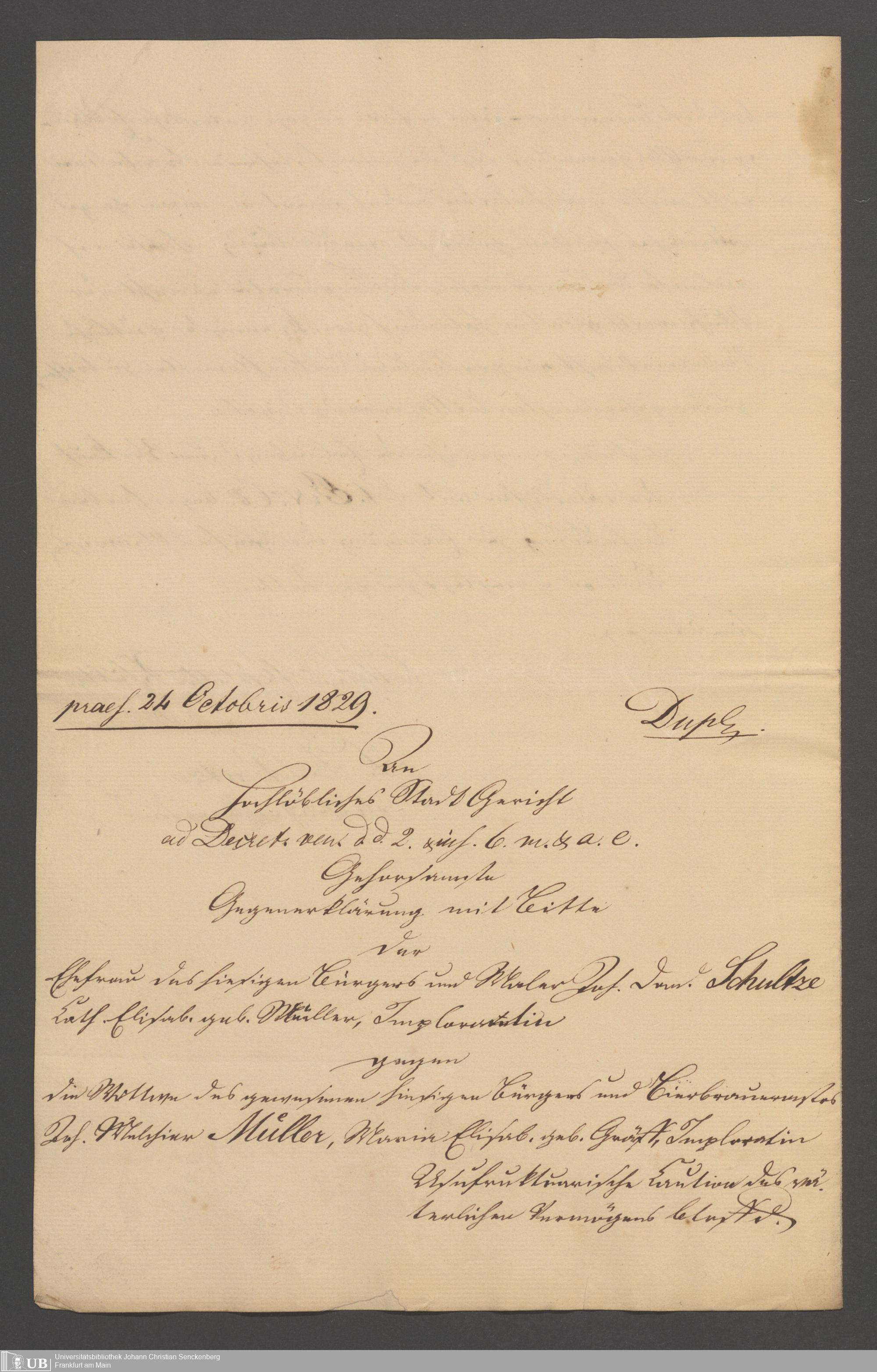 B 5 Dr. Senckenbergische Stiftung, 154 - Akten der Pfründnerin Maria Elisabeth Müller contra Catharina Elisabeth Schulze