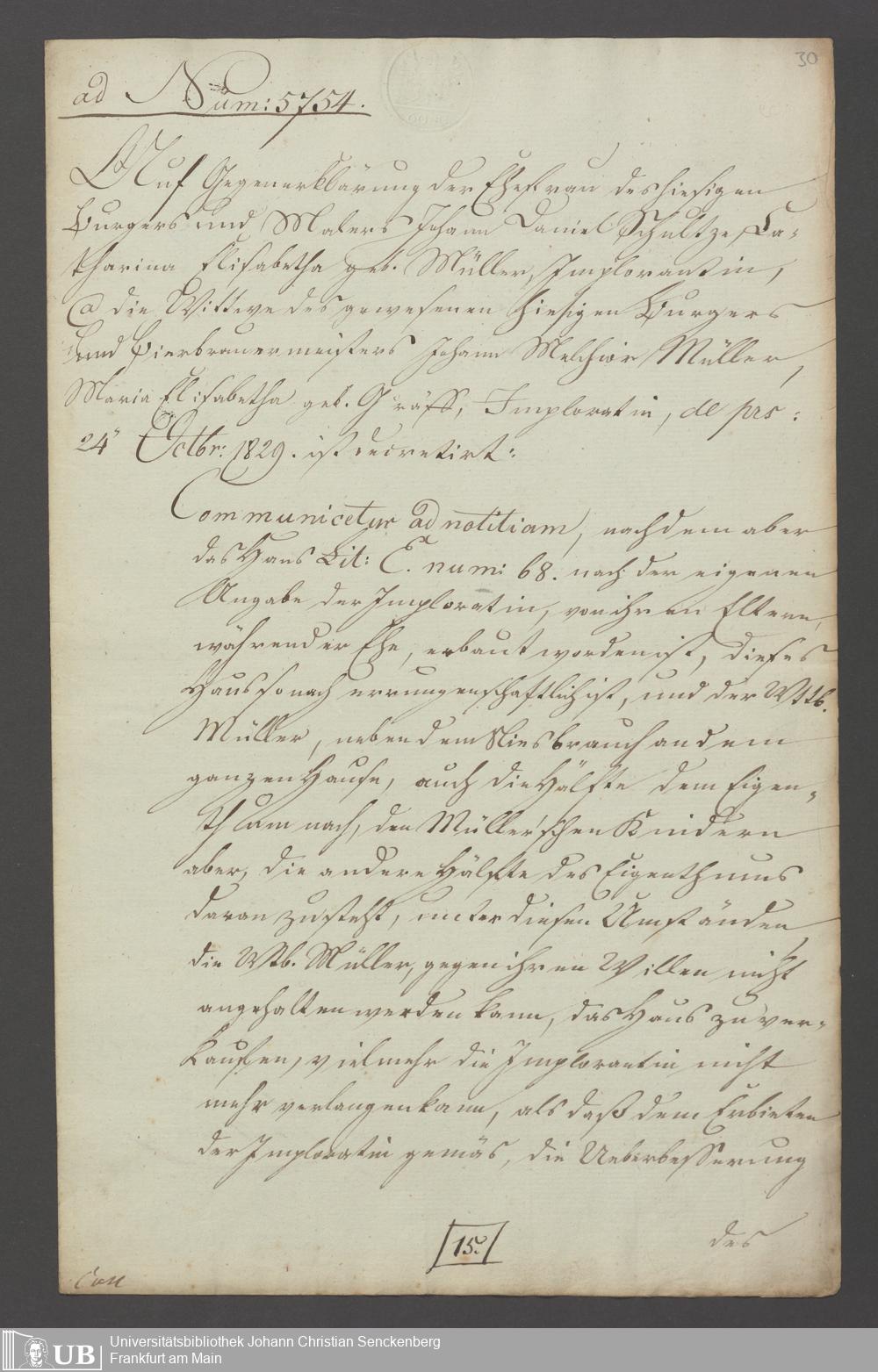 B 5 Dr. Senckenbergische Stiftung, 154 - Akten der Pfründnerin Maria Elisabeth Müller contra Catharina Elisabeth Schulze