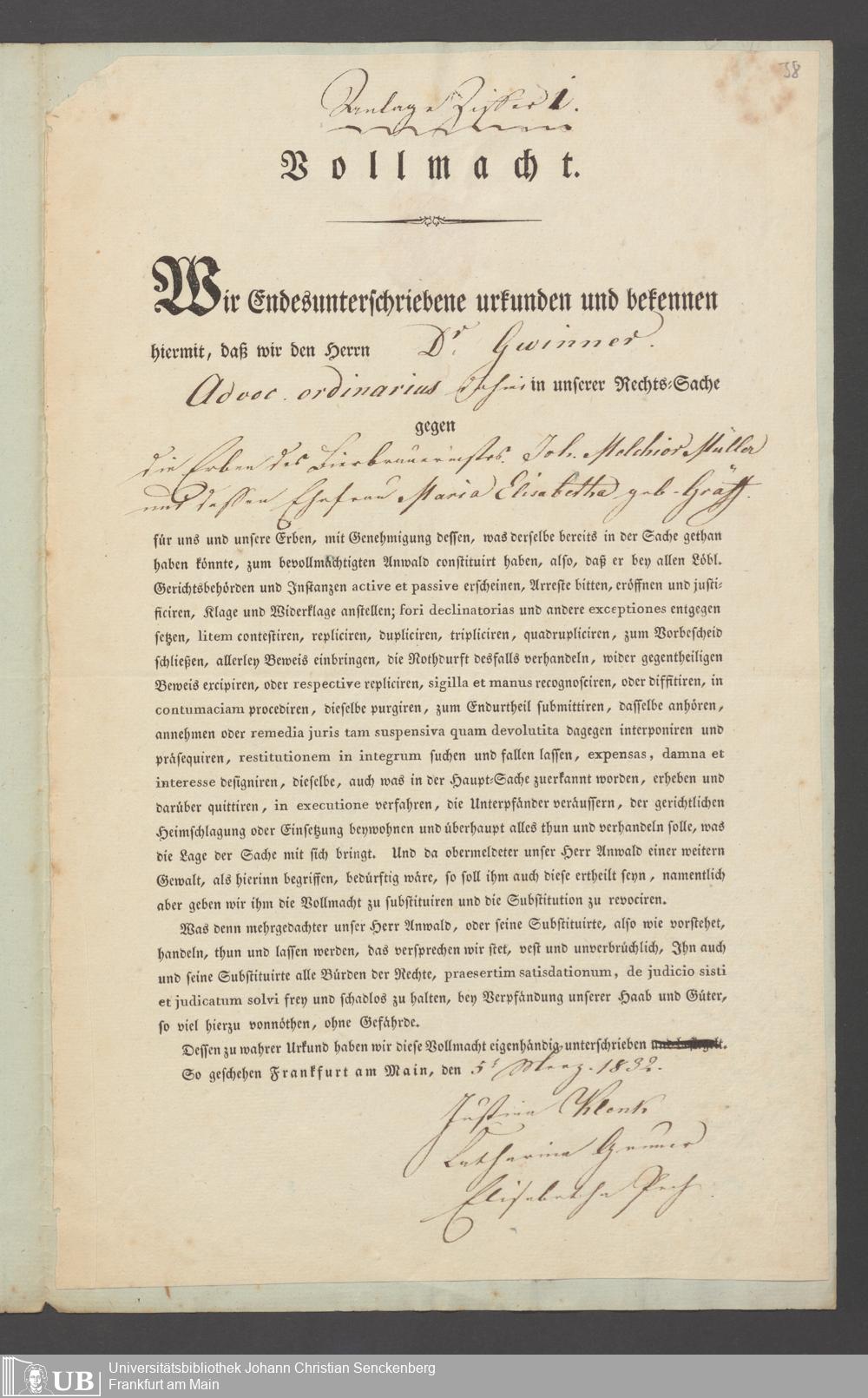 B 5 Dr. Senckenbergische Stiftung, 154 - Akten der Pfründnerin Maria Elisabeth Müller contra Catharina Elisabeth Schulze
