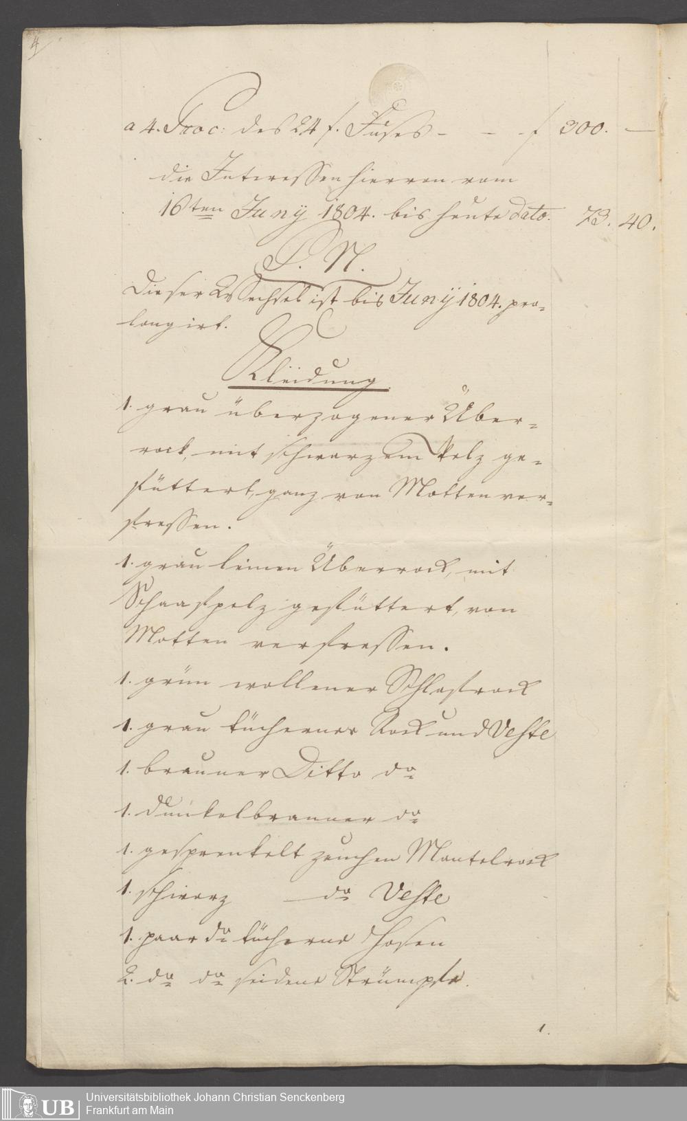 B 5 Dr. Senckenbergische Stiftung, 158 - Nachlassinventar Christlieb Feldstrauch