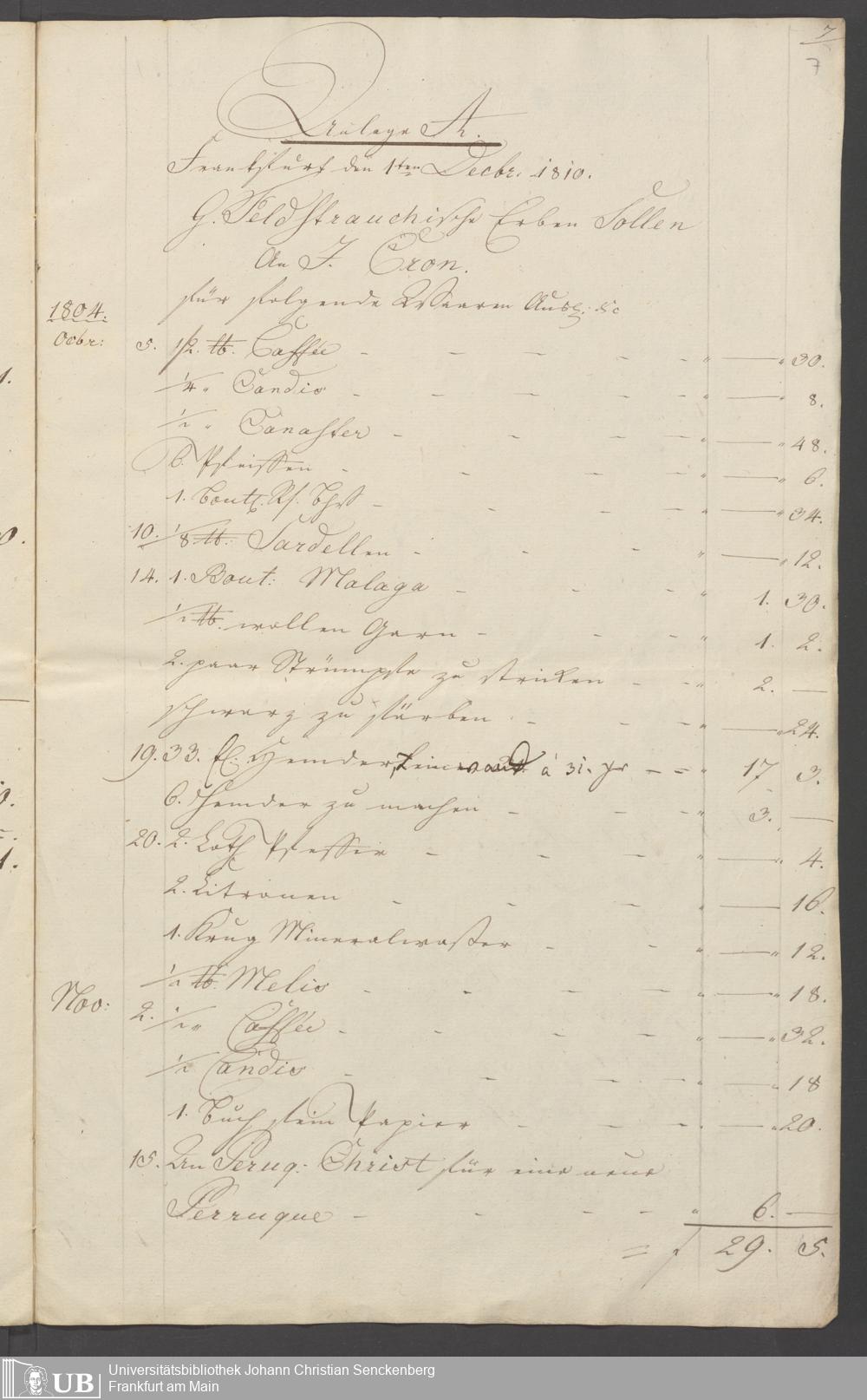 B 5 Dr. Senckenbergische Stiftung, 158 - Nachlassinventar Christlieb Feldstrauch