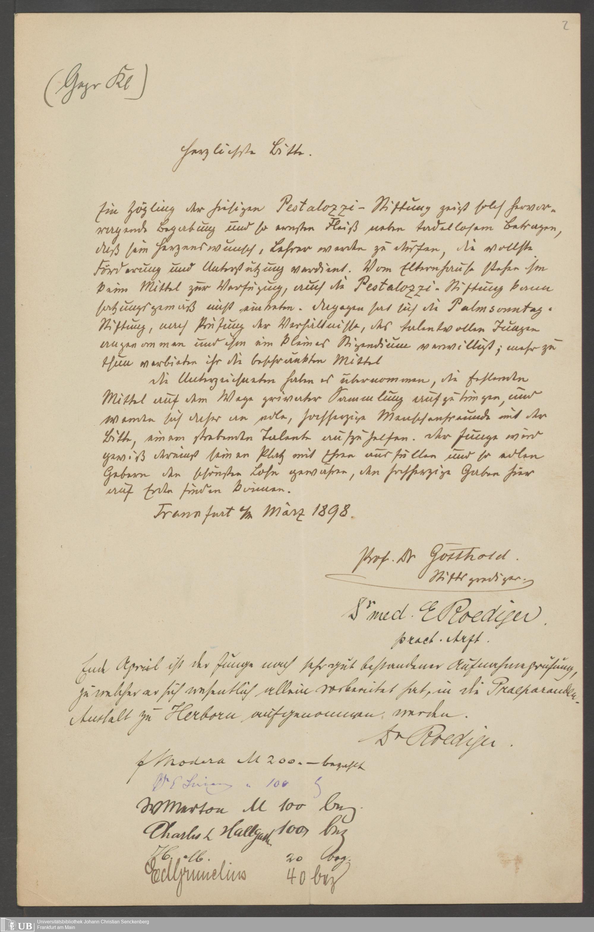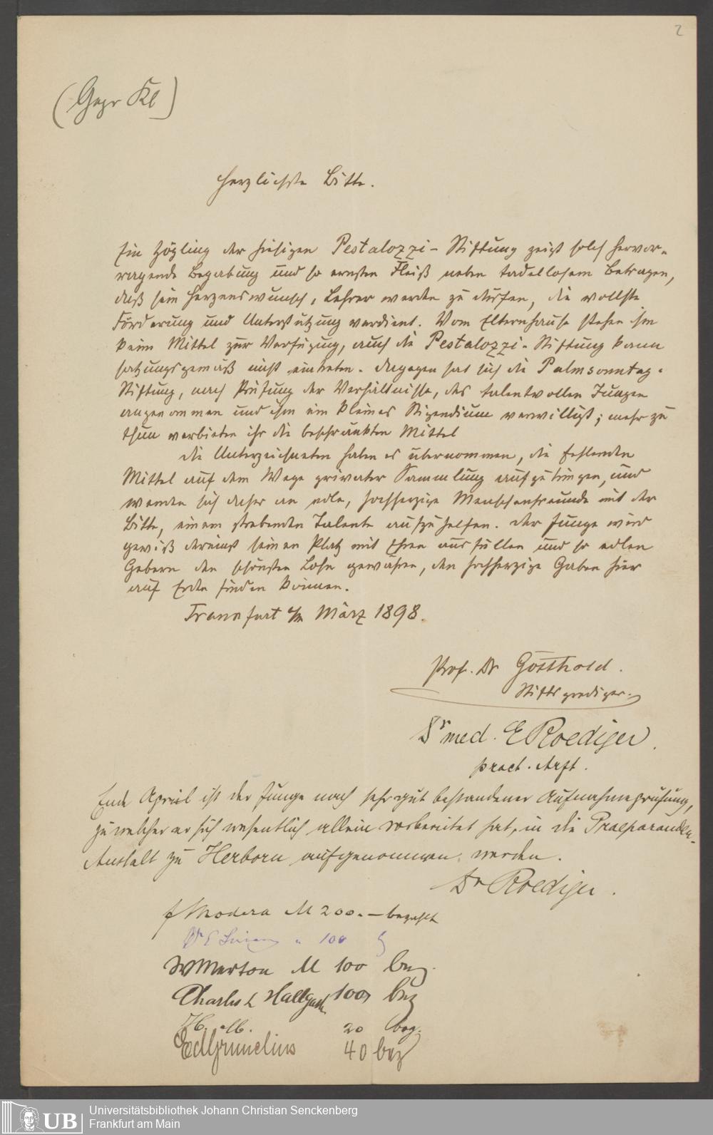 B 5 Dr. Senckenbergische Stiftung, 160 - Palmsonntag-Stiftung